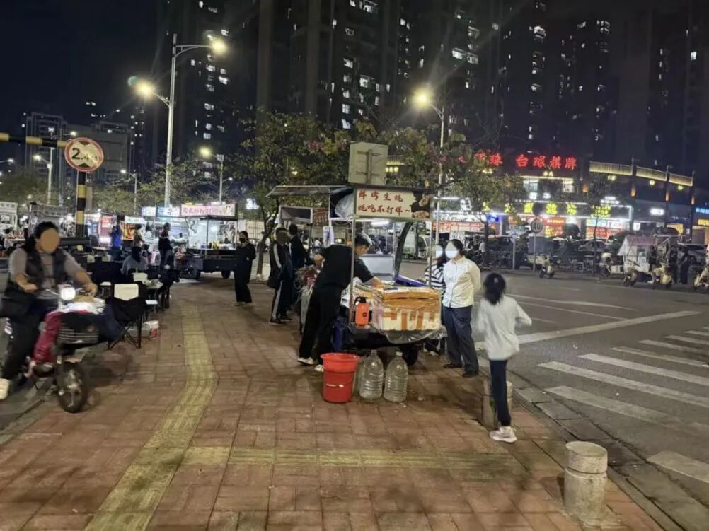 “我是一名住在西南街道北江新区周边的居民,最近出门感觉格外闹心。特别是到了傍晚,本准备到小区楼下散散步消消食,可刚走进这条街,就被烧烤、炸串的油烟呛得眼泪直流。人行道上挤满了各种摊贩,果皮、泔水等垃圾遍地,嘈杂声响此起彼伏,原本宽敞的道路被挤得水泄不通,出行特别不方便。”有周边居民如此吐槽反映。