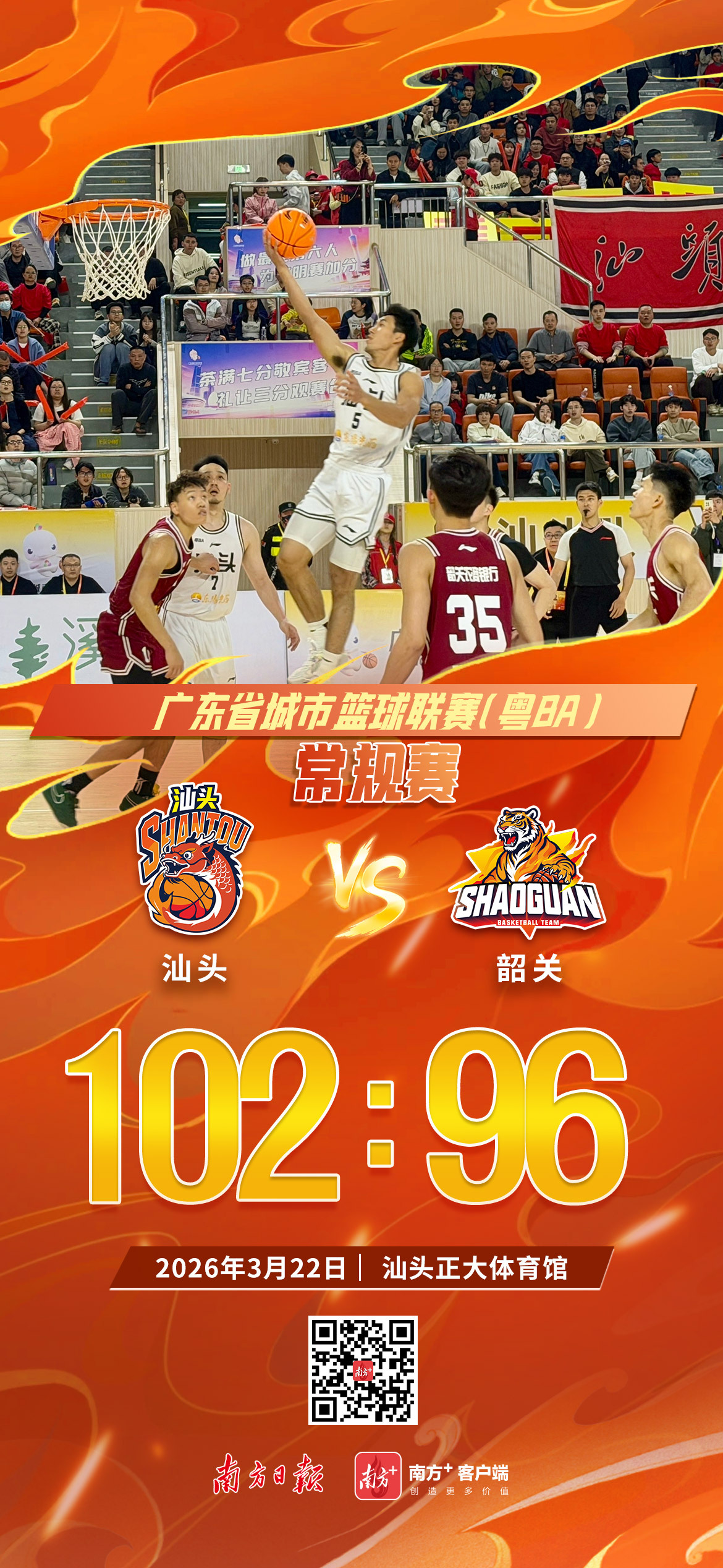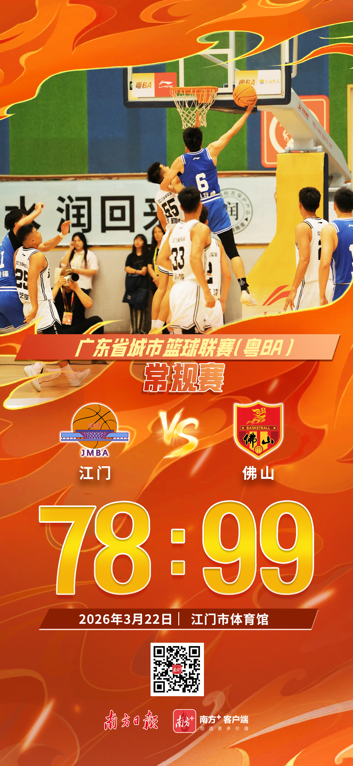 2026年广东省城市篮球联赛(粤BA)3月22日晚结束了首轮较量。双加时鏖战、读秒绝杀、客场横扫……南粤篮球的澎湃激情与各地独特的城市烟火气,在赛场内外撞个满怀,为球迷奉上一场酣畅淋漓的篮球盛宴。一组海报了解首轮战况:文字:南方+记者 梁时禹设计:张雅 巫雅柠 廖宇航 刘栋铭 肖俏 区洁莹 马吉池 南方日报、南方+客户端原创,未经授权不得转载 编辑 唐锦洪 订阅后可查看全文(剩余80%)