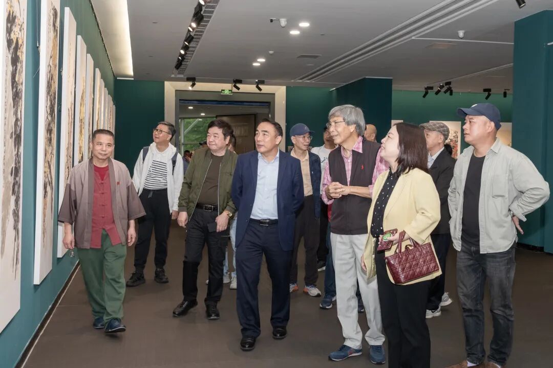 全体领导嘉宾在江门市美术馆前厅合影留念并参观展览。