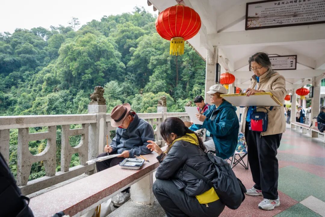 清晨的鼎湖山薄雾轻绕,艺术家们带着画具,沿着青石台阶拾级而上,在飞水潭、庆云寺、蝴蝶谷等标志性景点驻足创作。