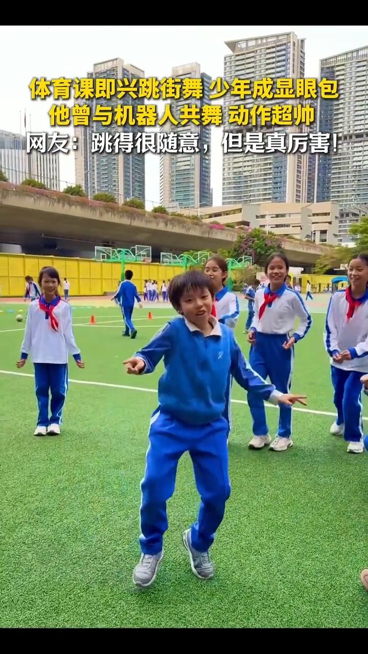 发布视频的老师透露,跳舞的同学是深圳南山区前海港湾小学的三年级学生,他还曾经在学校科技节上与机器人共舞。舞动青春>>