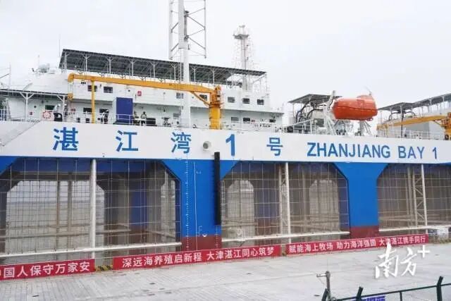 “湛江湾1号”总长154米、总宽44米,承载8万立方米养殖水体,可年产鮸鱼、金枪鱼等名贵鱼类2000吨。