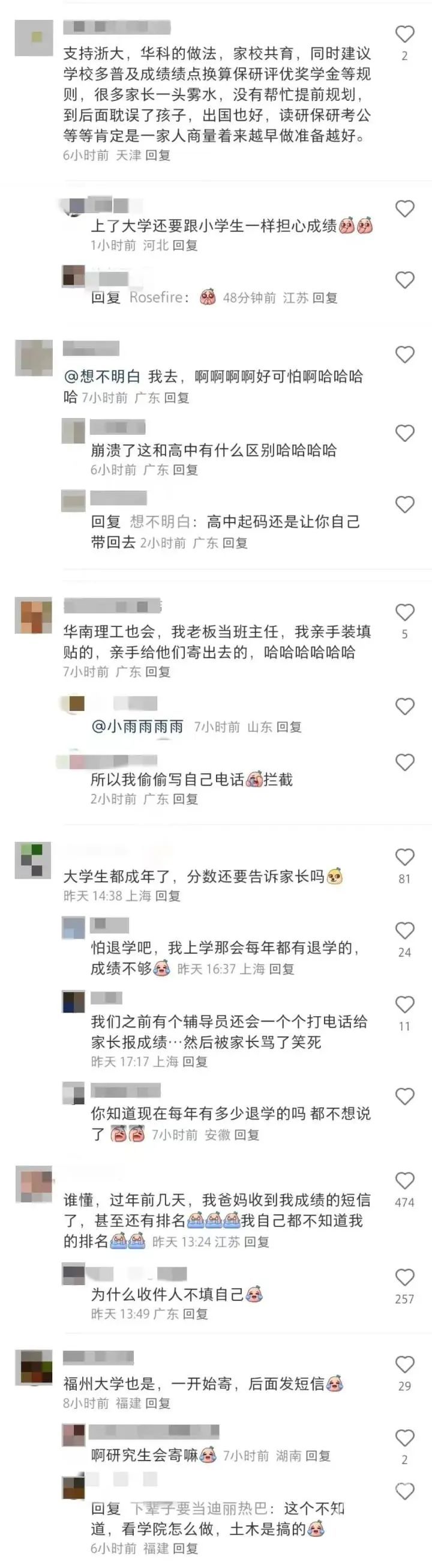 不少网友觉得意外,大学竟然还有成绩单,还会寄回家?网友在这个帖子下面留下了几百条留言。