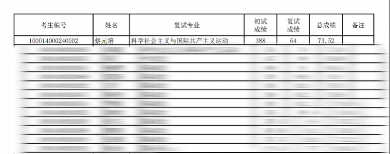 北大国际关系学院公布的复试成绩显示,考生蔡元培的复试成绩为64分,比另一位同专业考生低10分。但因为初试成绩领先,根据初试权重70%、复试权重30%的加权核算方式,他的总成绩依然排名其复试专业——科学社会主义与国际共产主义运动专业第一。