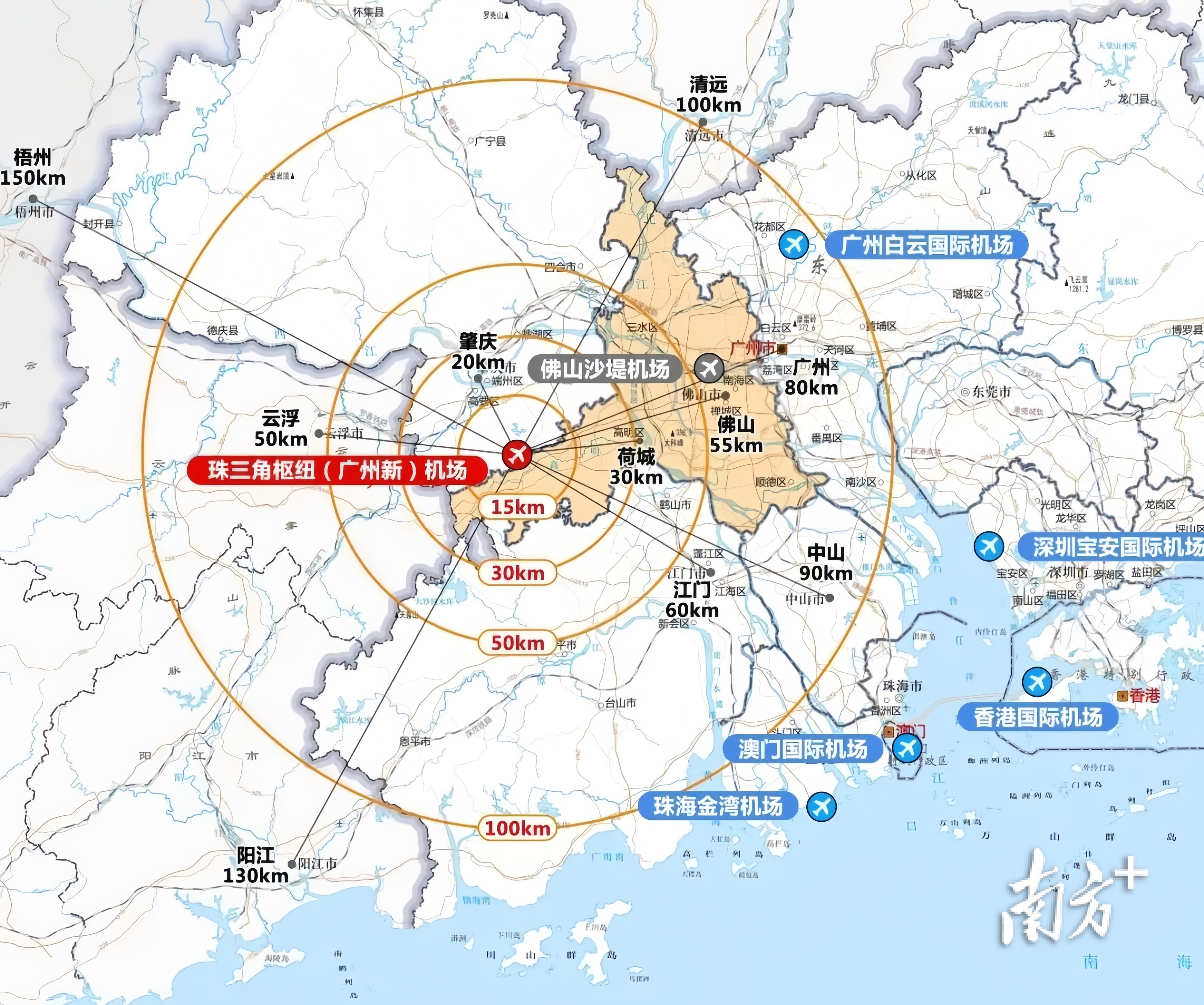 同时,在去年12月,广州新机场项目即珠三角枢纽(广州新)机场正式获得国务院的立项批复,目前已进入全面建设阶段。该项目位于佛山市高明区更合镇和肇庆市高要区蛟塘镇交界,大致在云城区腰古镇东边30多公里处,距云浮市中心约60公里。