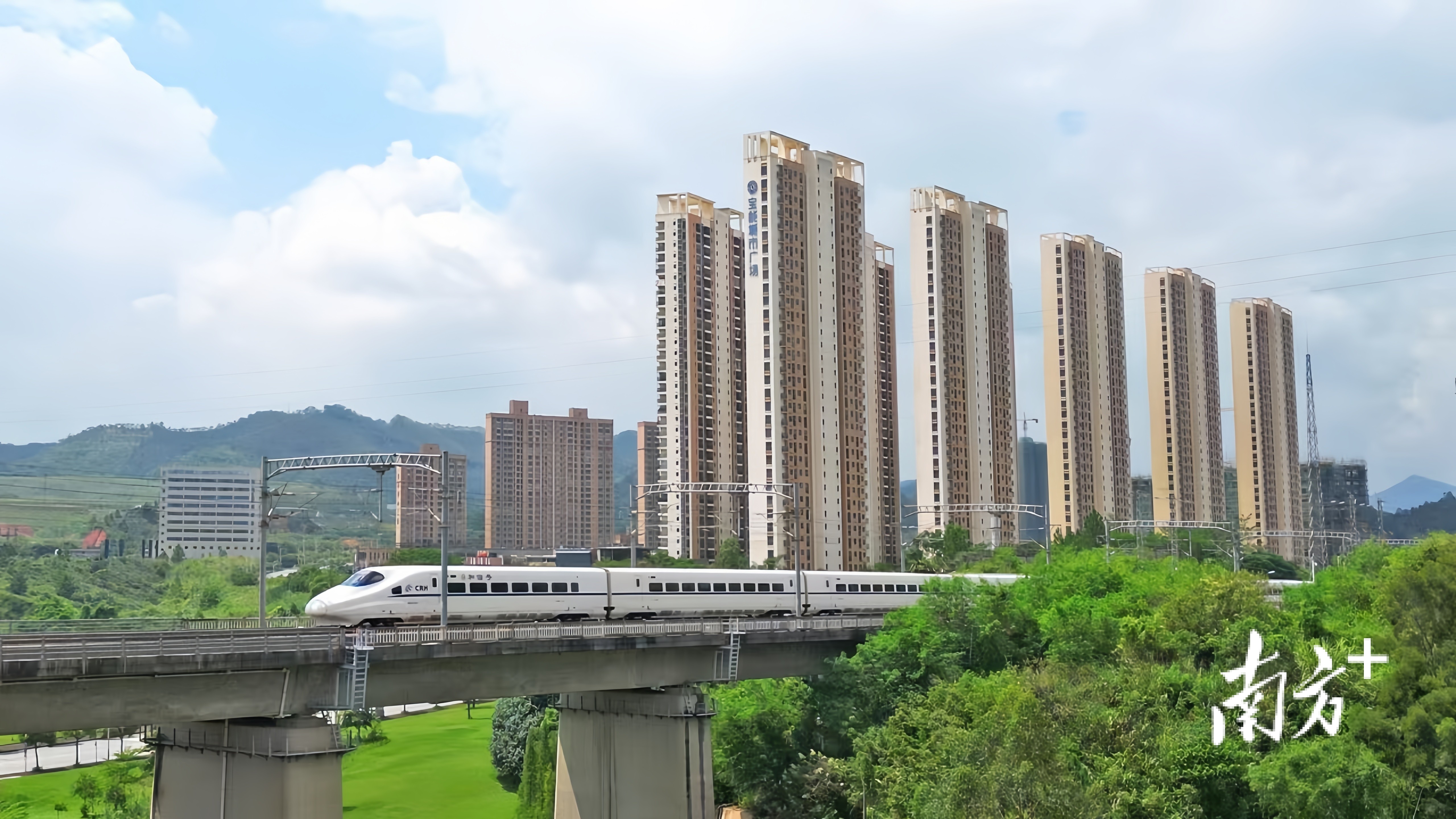 高铁在云浮新区飞驰。云浮融媒(集团)供图