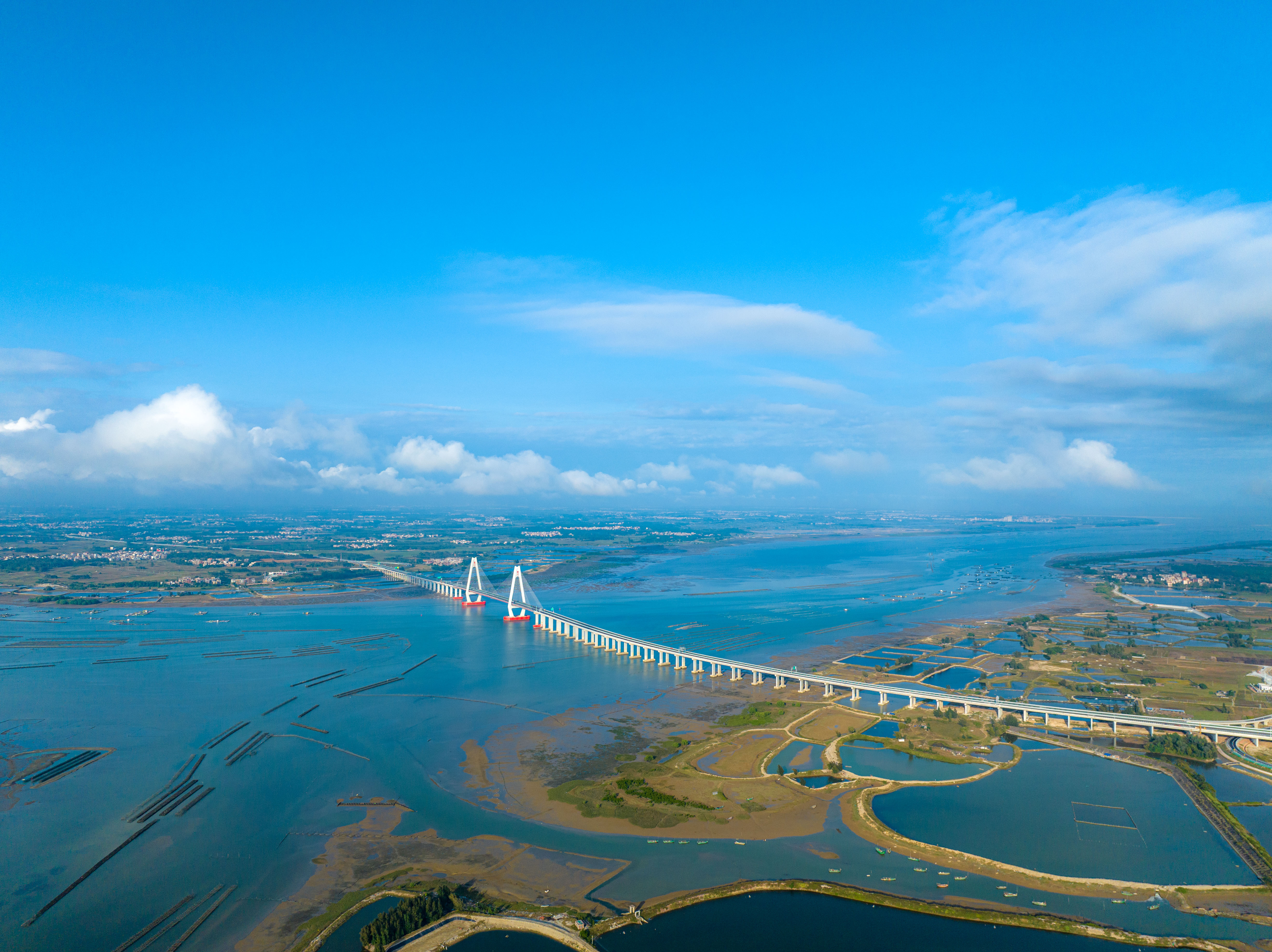 湛江环城高速南三岛大桥项目长约16公里,连接湛江南三岛和吴川市黄坡镇,主体桥梁为跨越南三航道的跨海大桥——鹭洲大桥,大桥长3043米,可承受16级台风,桥下通航吨位达3000吨。