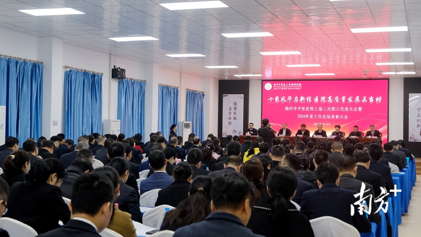 1月18日,广州中医药大学梅州医院(梅州市中医医院、梅州市田家炳医院)三届二次职工代表大会暨2024年度工作总结表彰大会举行。医院党委书记郑青主持会议,院长王锦作主题为《十载风华启新程 医院高质量发展正当时》的医院工作报告,回顾2024年工作,部署2025年工作。梅州市政府领导,广州中医药大学、市总工会、市人社局、市财政局、市卫生健康局等单位相关负责人以及医院领导班子、职工代表及列席代表等约205人参加会议。