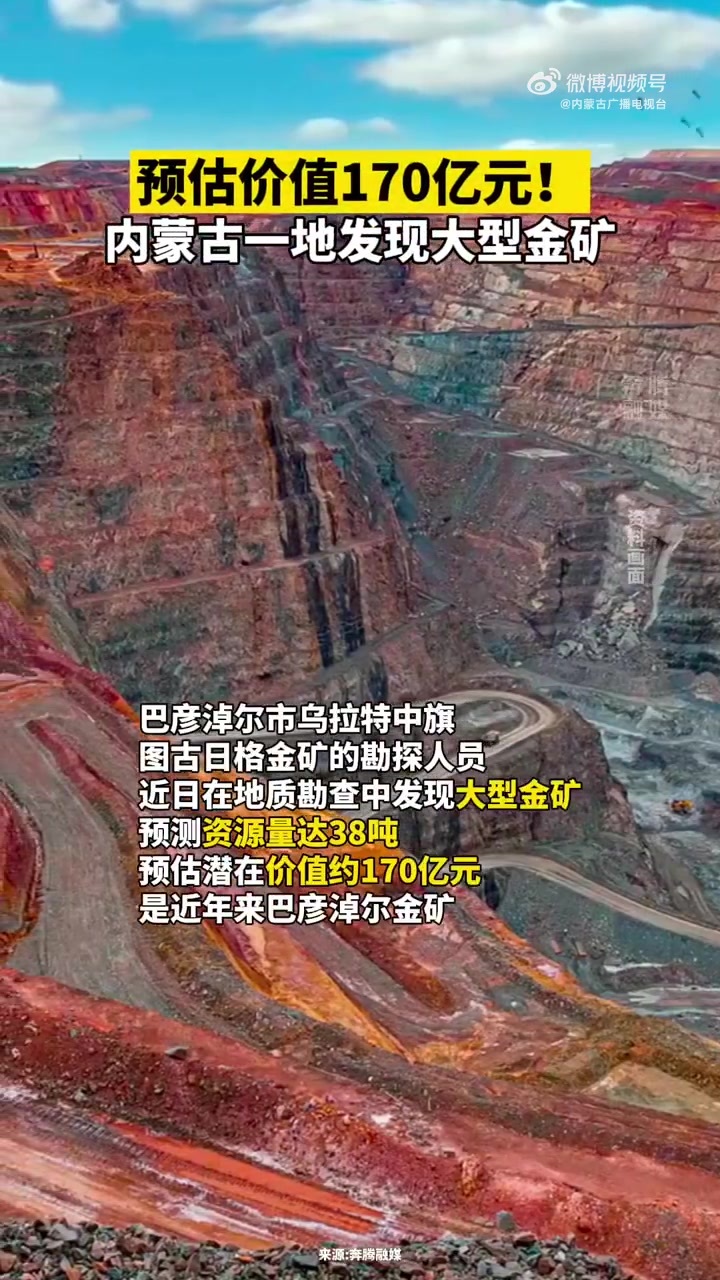 乌拉特中旗图古日格金矿的勘探人员近日在地质勘查中发现大型金矿,预测资源量达38吨,预估潜在价值约170亿元,是近年来巴彦淖尔金矿深部勘探又一成果。详情>>