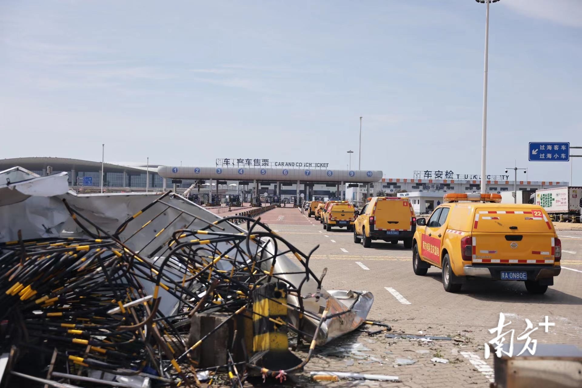 9月8日上午,记者在徐闻港看到已经有轮渡船在港口等待,车辆依次登船。上午登船的主要是抢险救援车辆,不少供电抢修车排队上船,计划前往海南跨海支援。