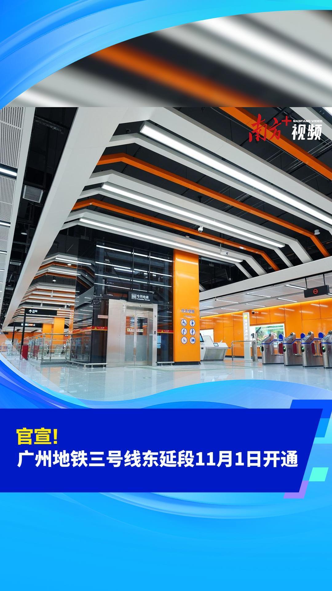 10月30日上午,广州地铁集团对外发布官方信息:在市委市政府有关部门的支持下,三号线东延段(番禺广场至海傍)顺利完成了项目建设与验收工作,通过初期运营前安全评估,定于11月1日首班车起开始运营。