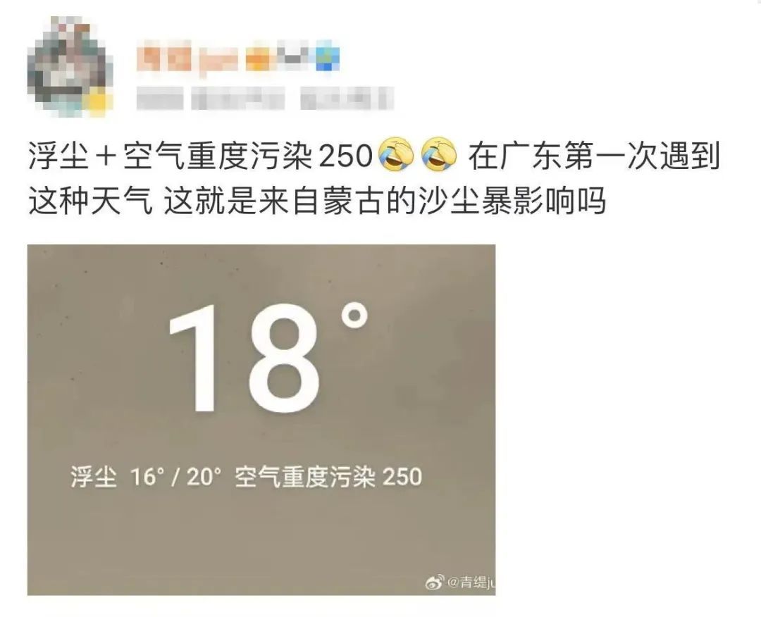 连广东这样空气质量常年优良的地方都没躲过,可见这次北方的大风和沙尘暴有多厉害。