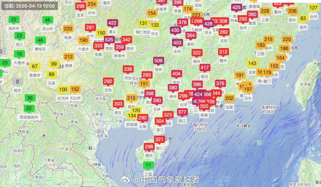 即便是常年空气质量靠前的珠海、深圳也超标很多,珠海PM10为359微克/立方米,深圳PM10为323微克/立方米。