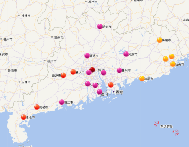 中度污染:珠海、湛江、河源、茂名、阳江、云浮