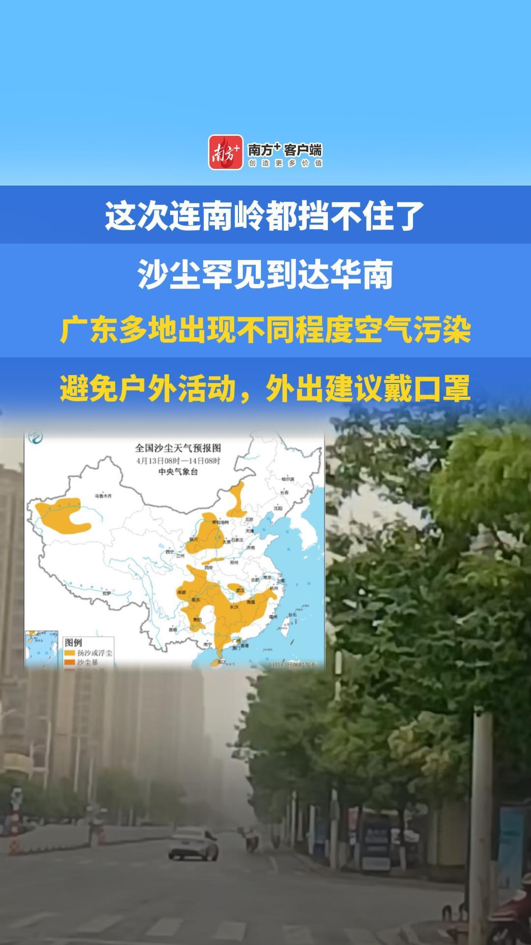 这次连南岭都挡不住了,沙尘罕见到达华南广东多地出现不同程度空气污染