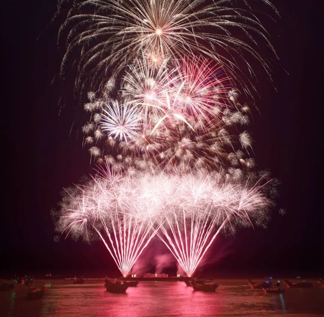 焰火秀以珠池港码头海上1.9公里为燃放阵线,以天为幕、海为台,无人机腾空、焰火作画。特制12寸高空特效礼花弹、10寸高空造型礼花弹,还首次引进5艘焰火花船。