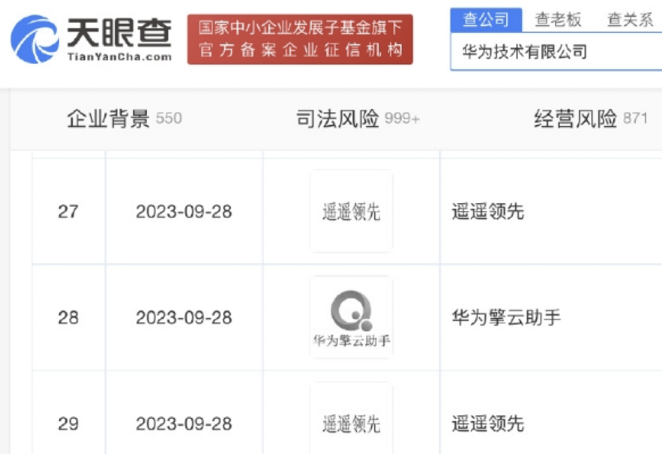 天眼查App显示,近日,华为技术有限公司申请注册“遥遥领先”商标,国际分类为运输工具、科学仪器,当前商标状态为等待实质审查。