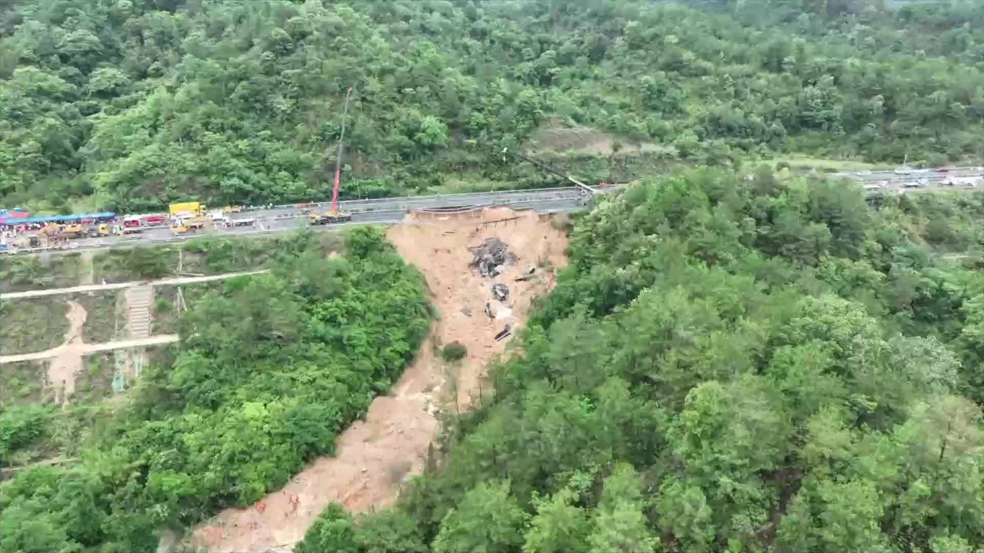 梅大高速路面塌方灾害相关处置工作正在进行中