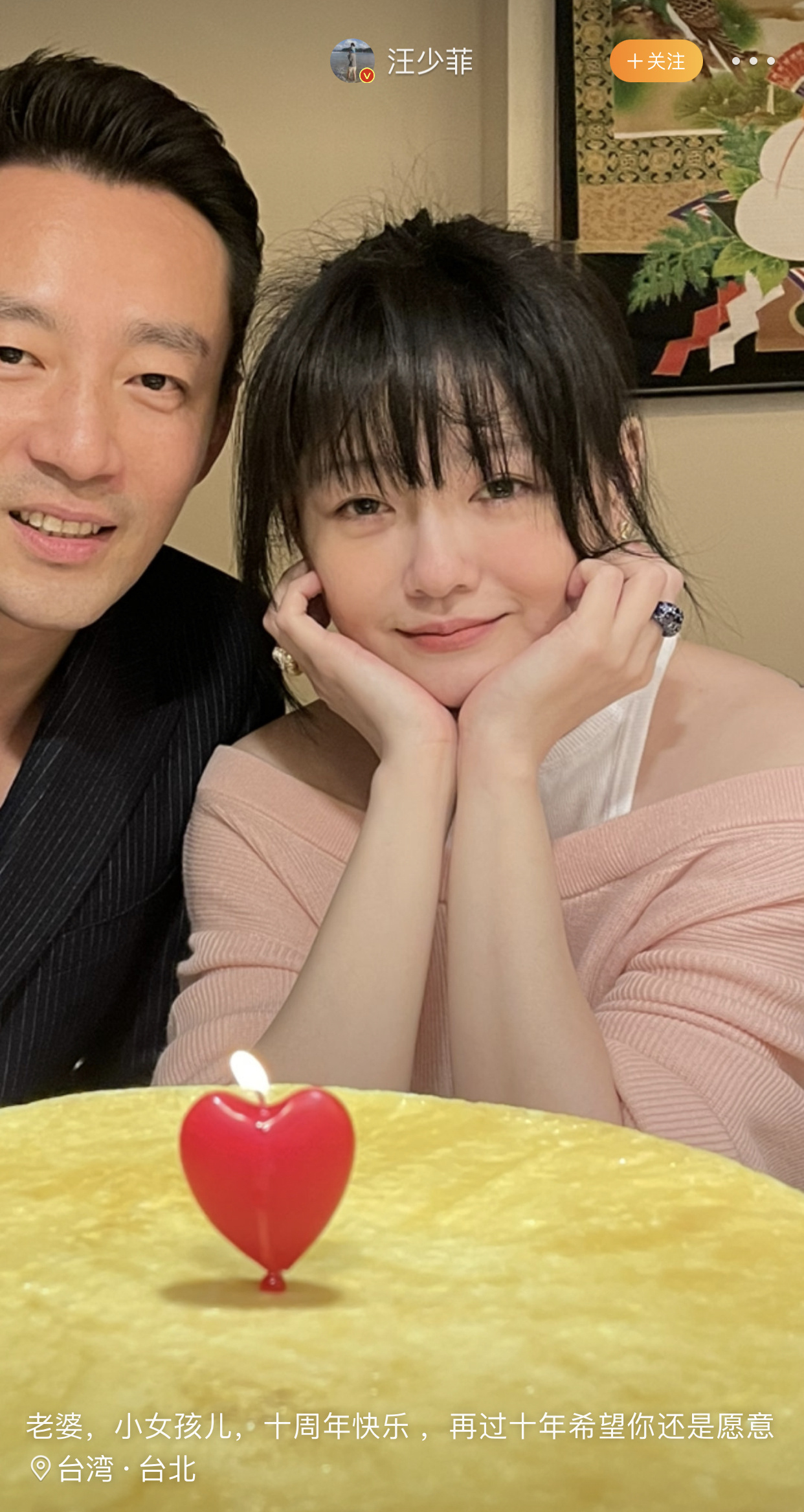 今年3月,汪小菲还在微博晒出和大S的甜蜜合影,庆祝结婚十周年。