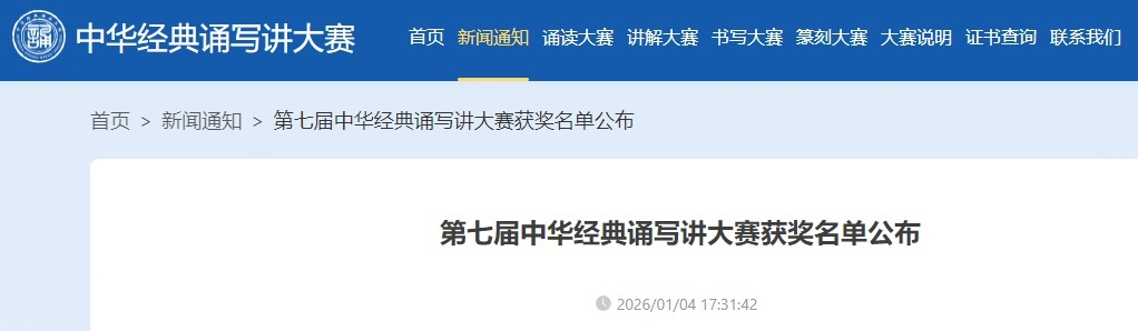 好消息!第七届中华经典诵写讲大赛获奖名单公布啦!