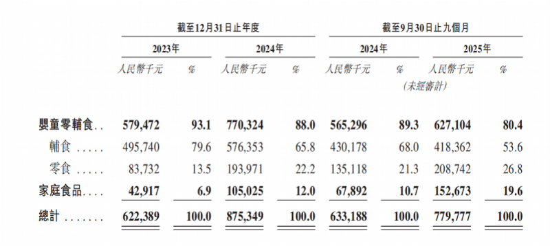 招股书显示,成立于2015年的爷爷的农场于2018年推出首款婴童辅食产品,后于2021年战略性进军家庭食品赛道。其中,婴童零辅食领域的产品包括食用油、调味品、谷物类辅食、果汁、果泥和果泥酸奶产品以及零食;家庭食品领域的产品则包括液态奶产品、方便食品、大米产品、调味品以及食用油。