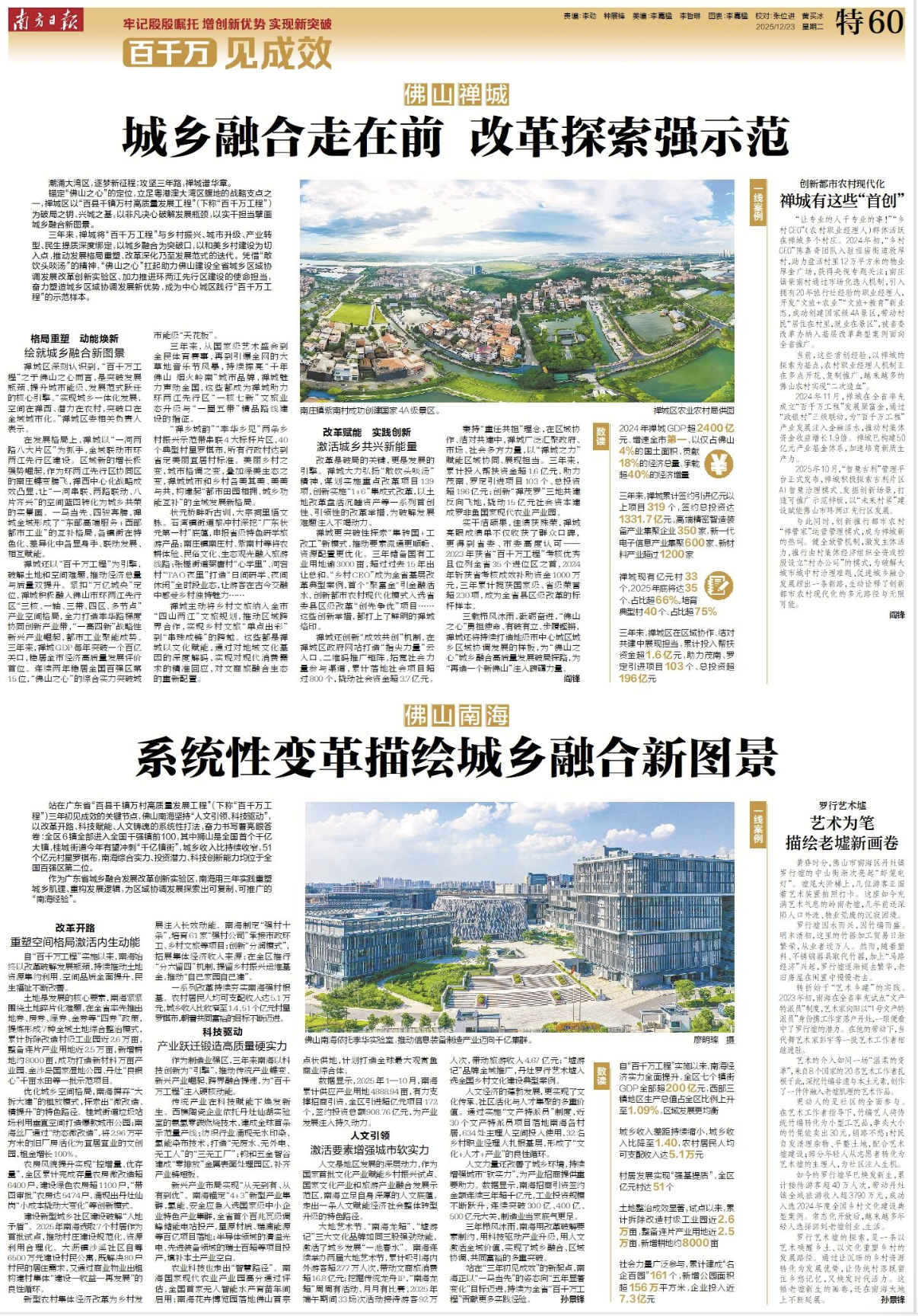 三年栉风沐雨,南海用改革破解要素制约,用科技驱动产业升级,用人文激活全域价值,实现了城乡融合、区域协调、共同富裕的多重突破。