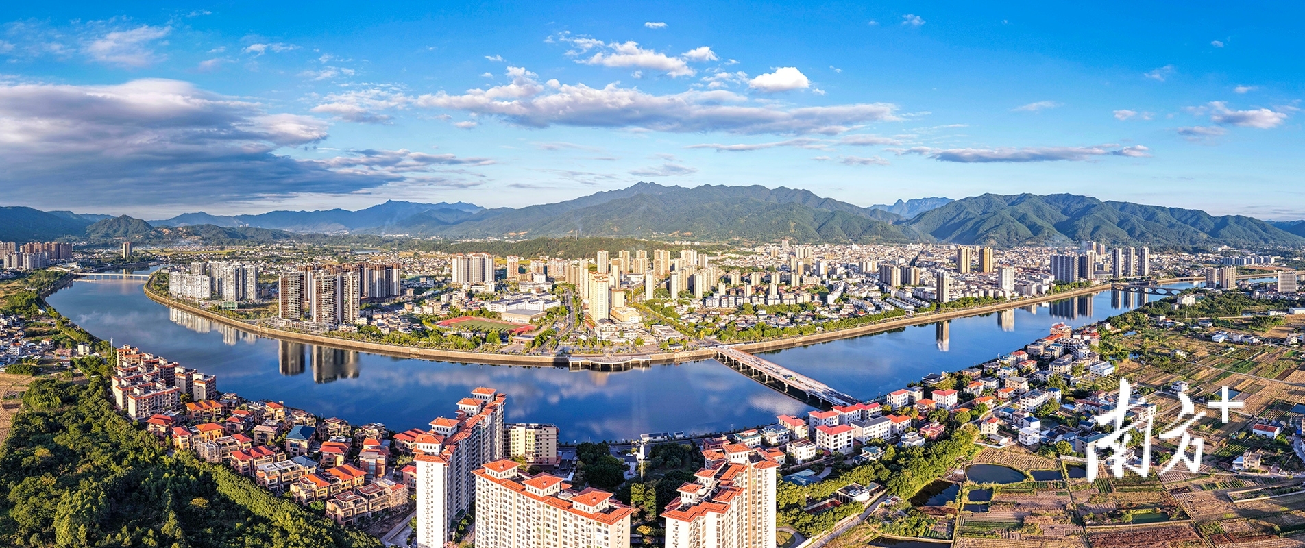 蕉岭县以石窟河为脉,规划低密度、高品质的“一带六片区”县城新格局。汪敬淼 摄