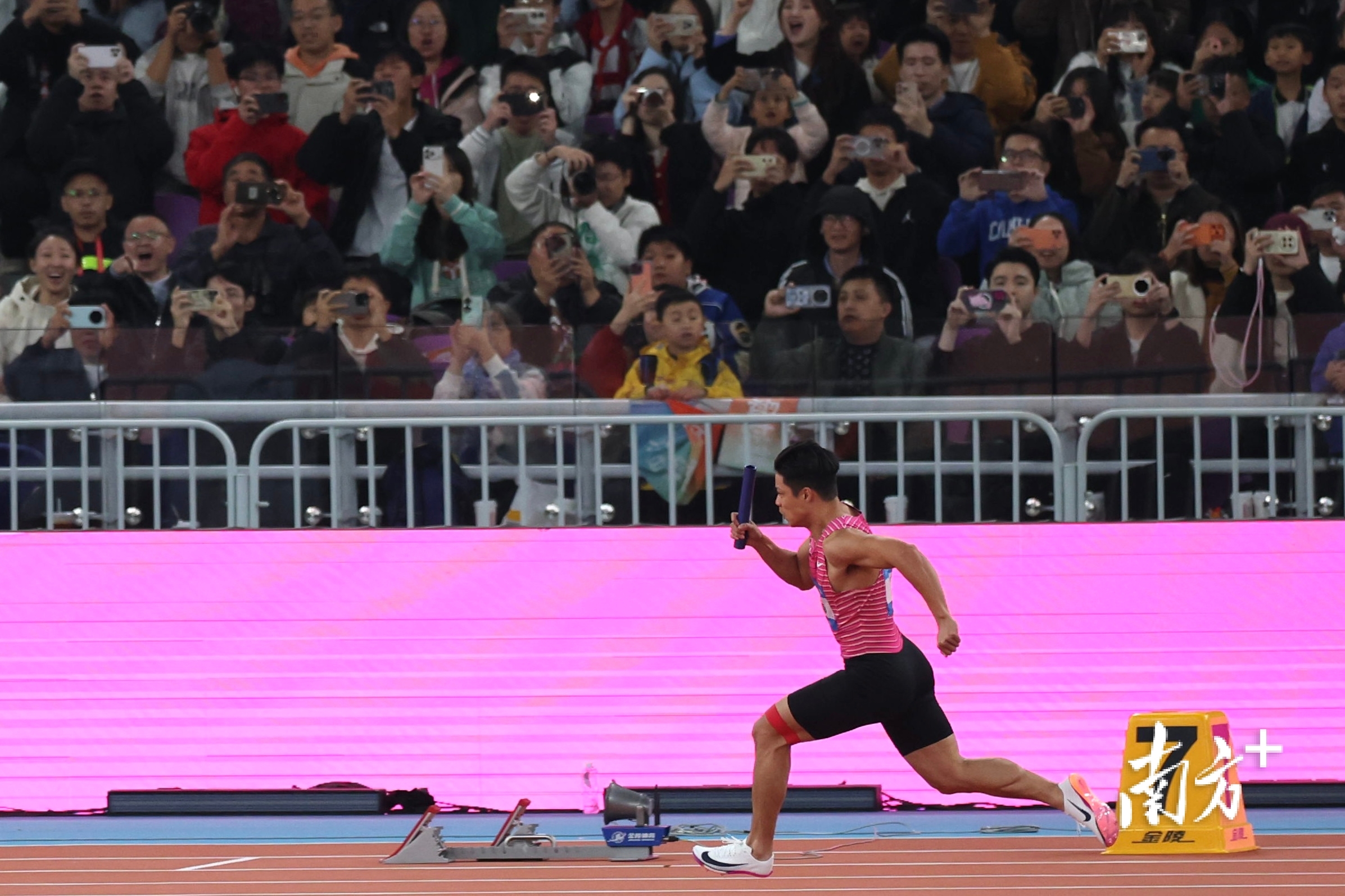 11月20日晚,十五运会男子4×100米接力决赛打响,由苏炳添领衔的广东队在第二道出发,与领奖台失之交臂,获得第四名。