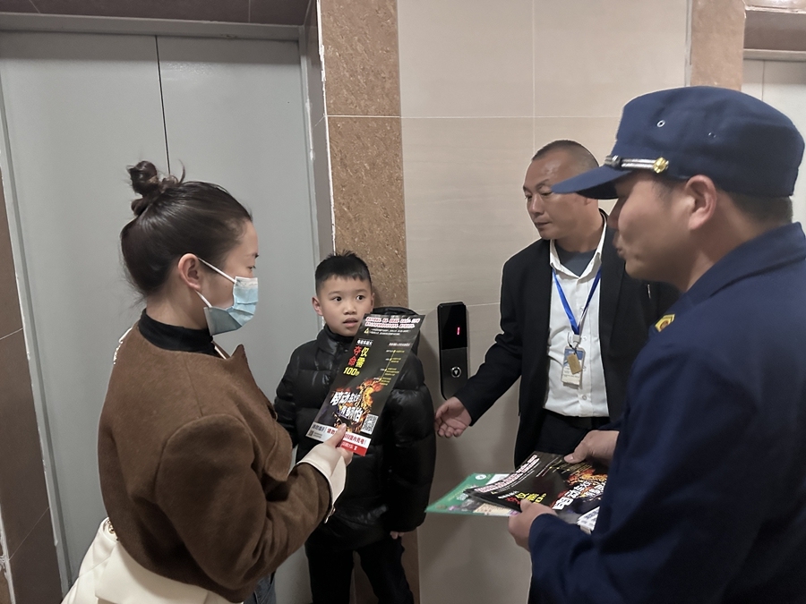 清溪消防救援大队联合应急管理、城管、妇联、团委等部门,走进高层住宅小区、沿街商铺及周边“三小”场所,开展消防安全宣传“敲门行动”。宣传人员发放家庭防火手册,讲解火灾预防、报警、初期扑救及逃生自救等常识,并提醒居民注意电气与厨房火灾风险,杜绝电动自行车违规行为。