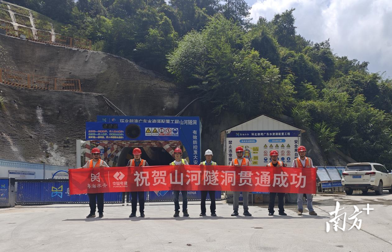 8月26日,环北广东工程云浮分干线山河隧洞实现全线贯通。山河隧洞位于罗定市附城街道山柏村和八亩村之间,是云浮分干线的“咽喉”。隧洞全长1297米,采用钻爆法施工,地质条件复杂,Ⅳ、Ⅴ类围岩占比超60%、岩层破碎,施工过程中频繁面临涌水、坍塌等风险,对建设团队的技术水平和施工能力构成了严峻挑战。
