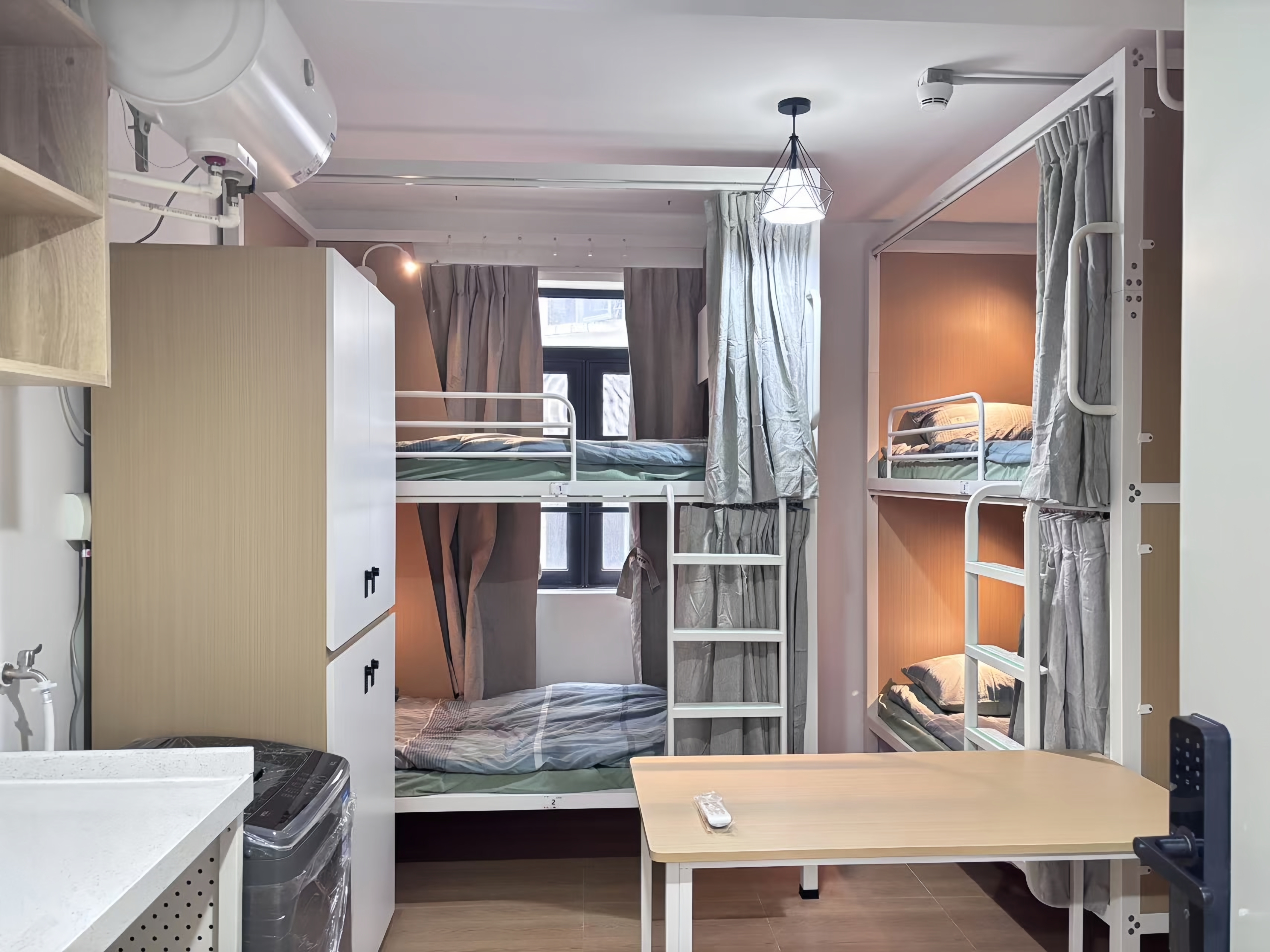 该驿站由政府提供财政支持,万科旗下泊寓负责运营,为应届生免费提供16间房,共60张床位,屋内配有空调、洗衣机和密码储物柜,以及床上用品,水电费全免,可实现拎包入住。