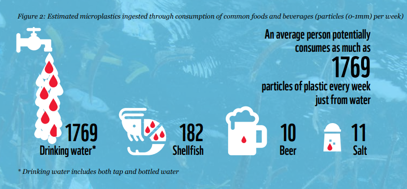 世界野生动物基金会曾发布过一个数据——一个人仅通过喝水,每周就能摄入微塑料颗粒将近1800个!