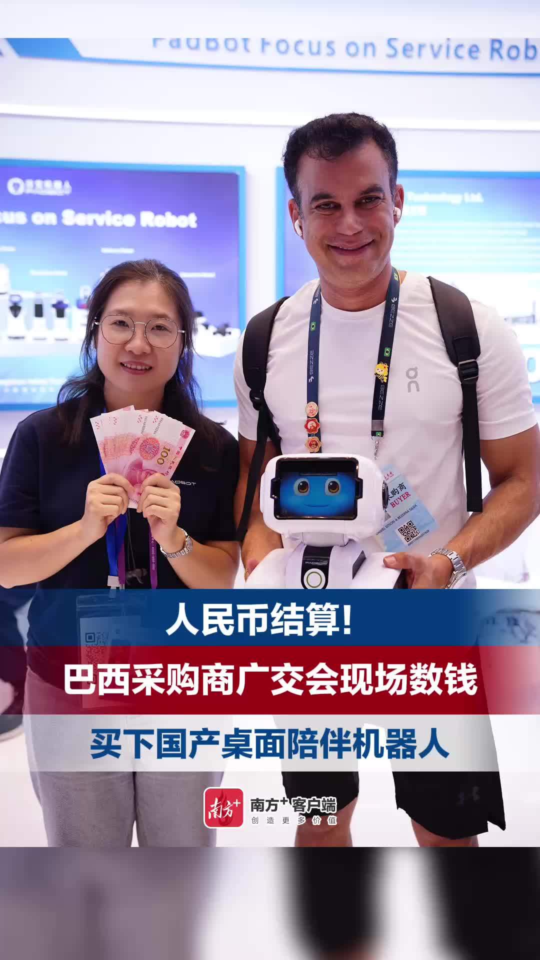 (人民币结算!巴西采购商广交会现场数钱买下国产桌面陪伴机器人,时长共15秒)