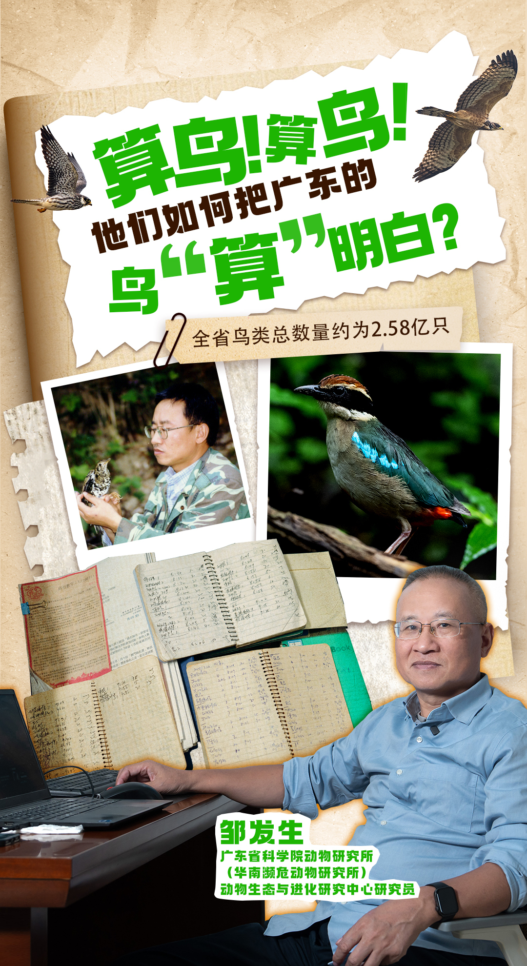 他们为啥要算鸟?怎么算的?南方+记者对话这项研究的作者之一、广东省科学院动物研究所(华南濒危动物研究所)动物生态与进化研究中心研究员邹发生,了解“算鸟”背后的故事。