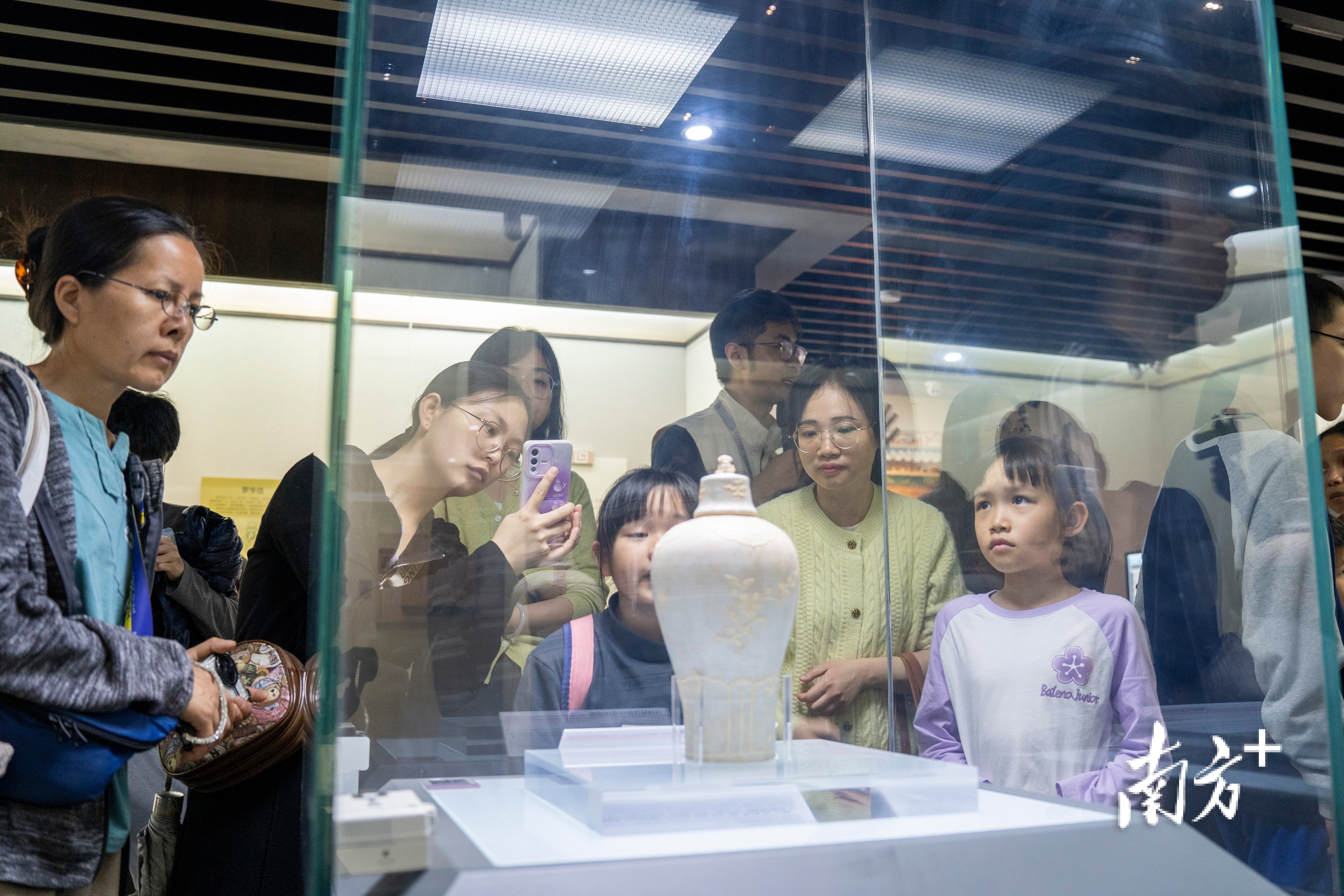 展厅里,观众抓紧最后闭馆前的时间,再与“镇馆之宝”白釉贴花折枝花纹梅瓶对视几眼。
