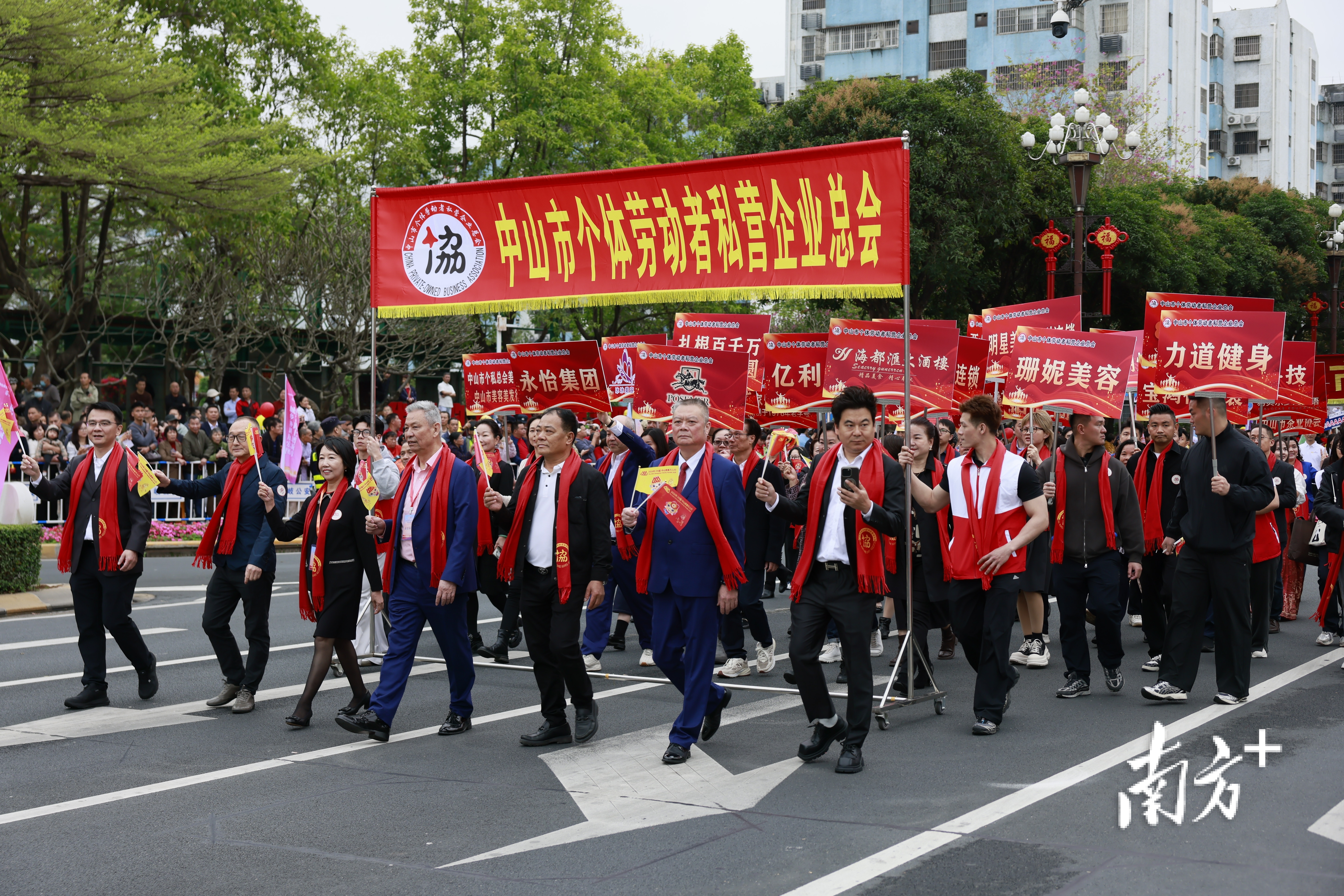 中山市个体劳动者私营企业总会方队。