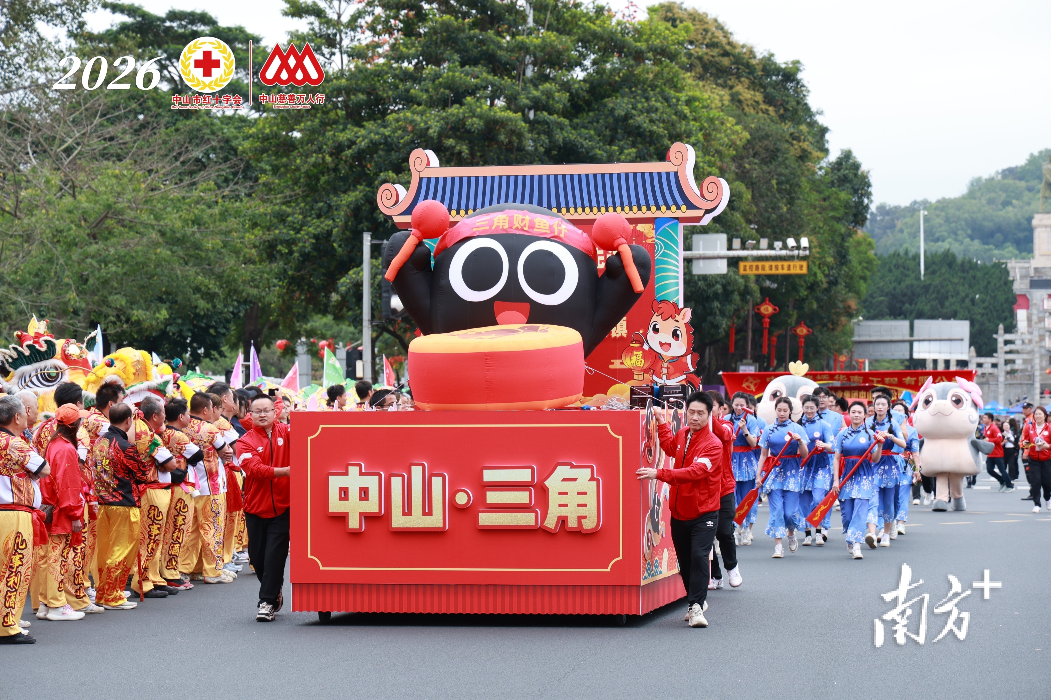 值得关注的是,三角生鱼产业超级IP“三角财鱼仔”家族首次亮相市慈善万人行巡游活动,金仔、喜妹、墨仔三个萌趣形象各具寓意,分别承载“财运”“情运”“幸运”美好期许;市级非遗三角根艇队与镇域干群队伍紧随其后,展现出该镇的昂扬精气神。