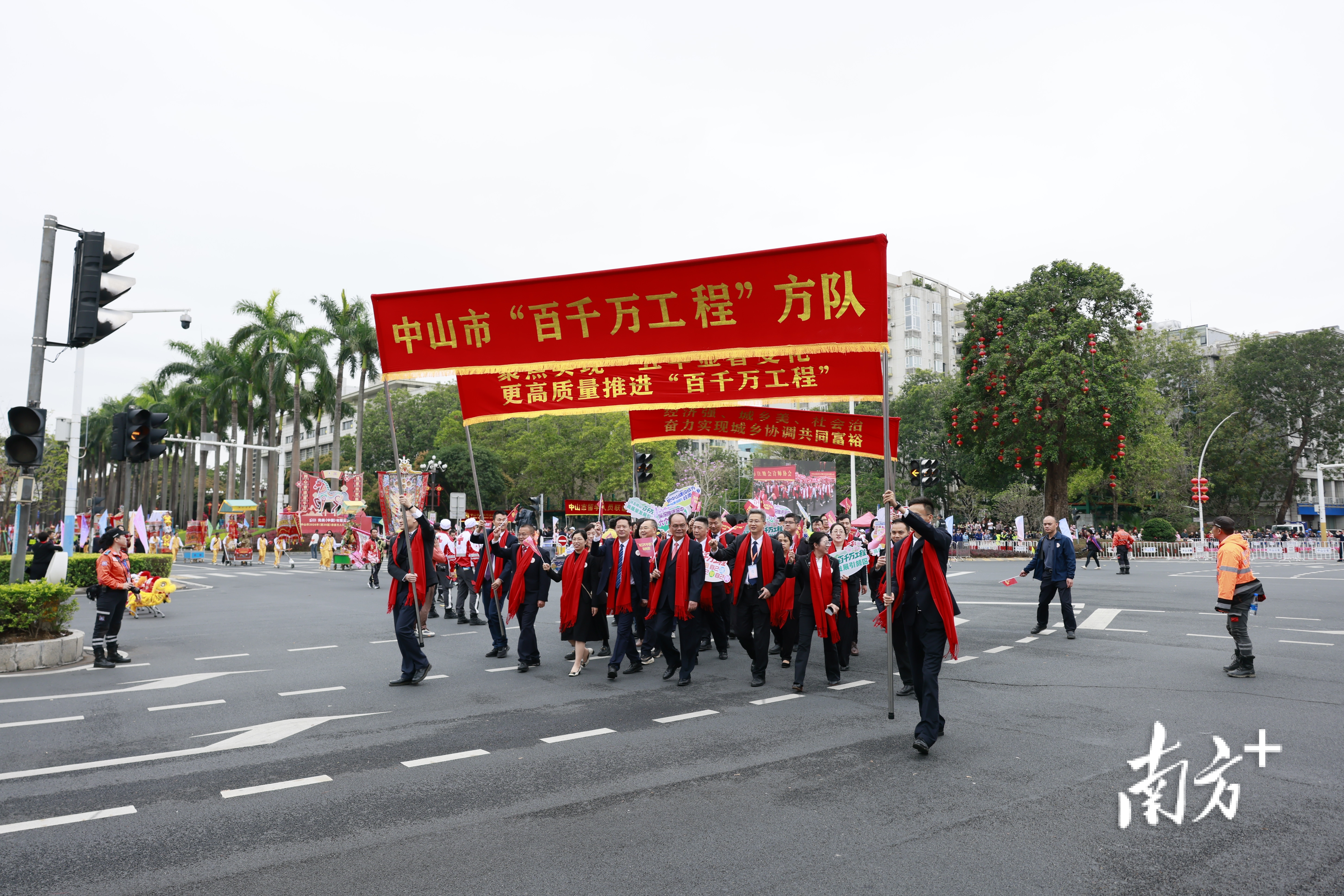 巡游现场,企业家方队、“百千万工程”方队、党员先锋方队、精神文明创建方队、文化兴城方队、乡村振兴方队、水治理攻坚方队、和美家庭方队、新质生产力、产业科技创新方队、劳模工匠方队、志愿者方队等一批特色方阵集中亮相,以昂扬姿态展现中山高质量发展的奋进力量。