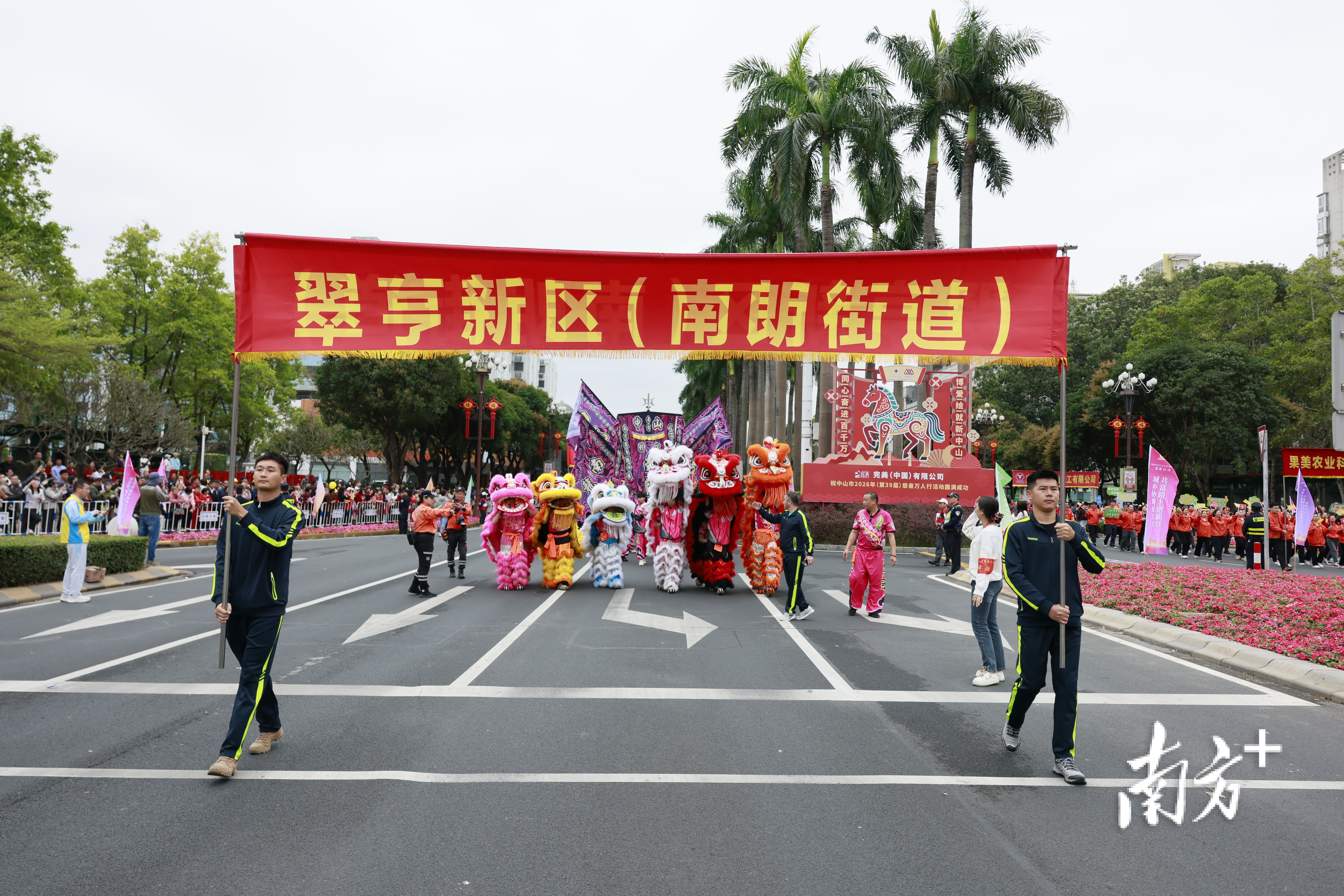 3月3日清晨,第39届中山慈善万人行巡游如约而至,兴中道与博爱路交界处锣鼓喧天、龙腾狮跃,为巡游活动添上浓浓祥瑞气息。由全市各界组成的260多支巡游队伍、1万多人昂首阔步、浩荡前行,与沿街市民游客热情互动。