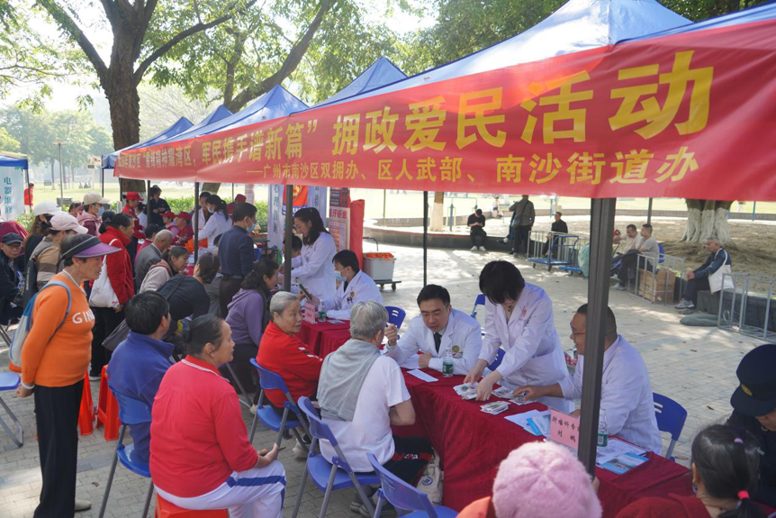 驻区部队官兵、南部战区总医院的专家团队、广州退役军人南沙红棉应急救援队志愿者以及拥军商企的代表们早早摆好了摊位。来自南部战区总医院的神经内科、骨科、中医科等多位骨干医师耐心问诊,细致检查,针对老年人常见的慢性病、骨关节疼痛等问题,给出实用的建议。“听说大医院的专家要来,我专门带了体检报告来咨询。”家住附近的陈阿姨竖起大拇指,“不用排队挂号,在家门口就能找部队专家看病,太方便了。”