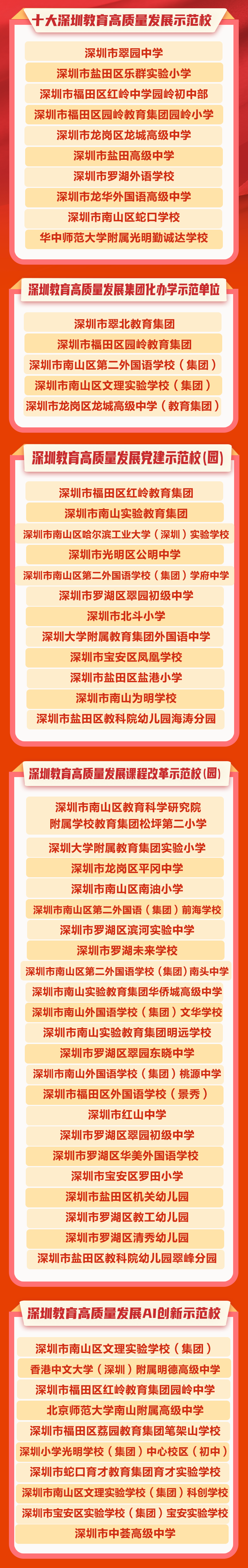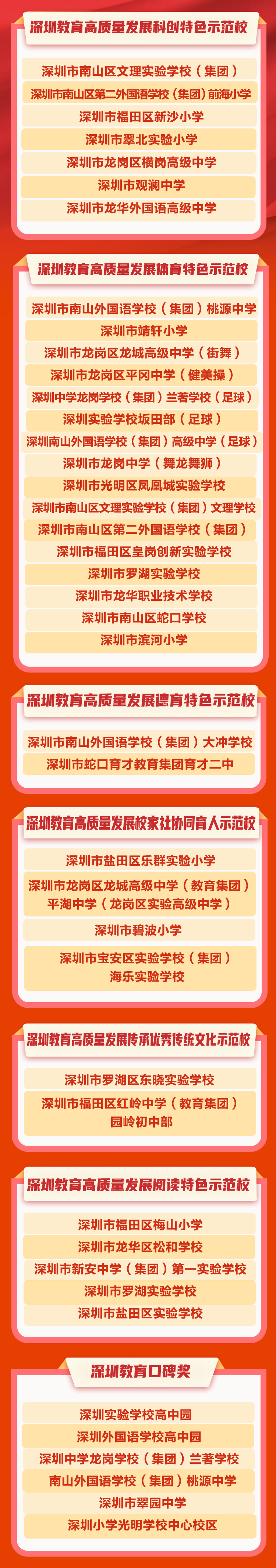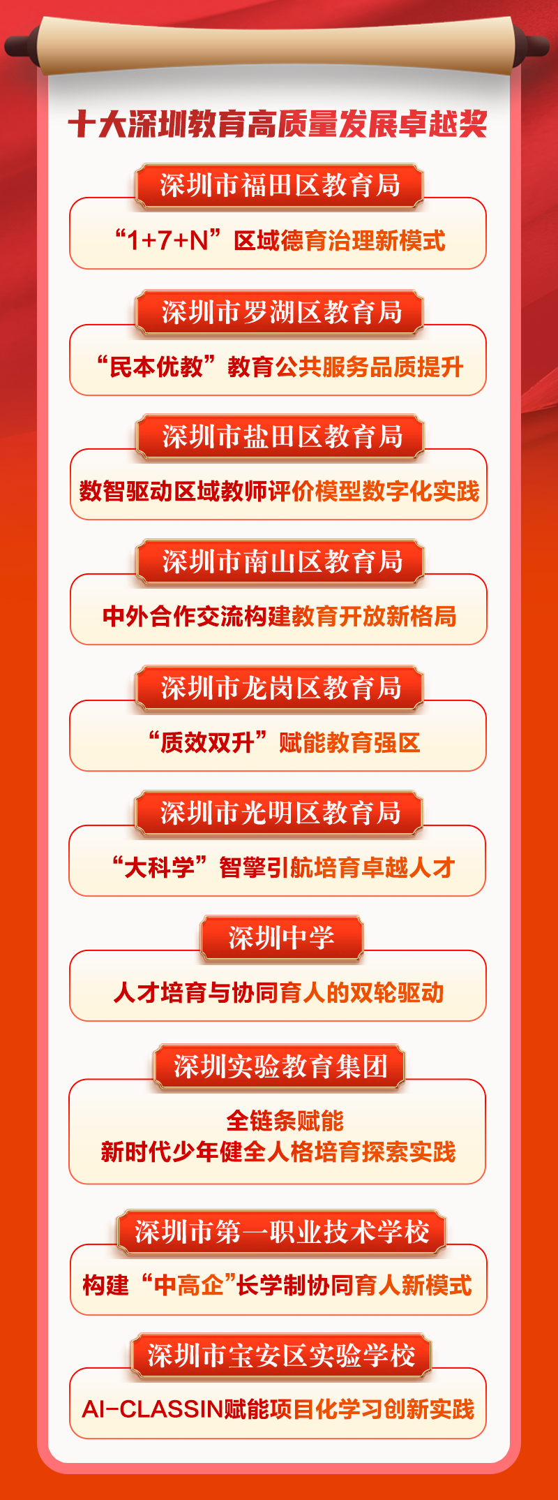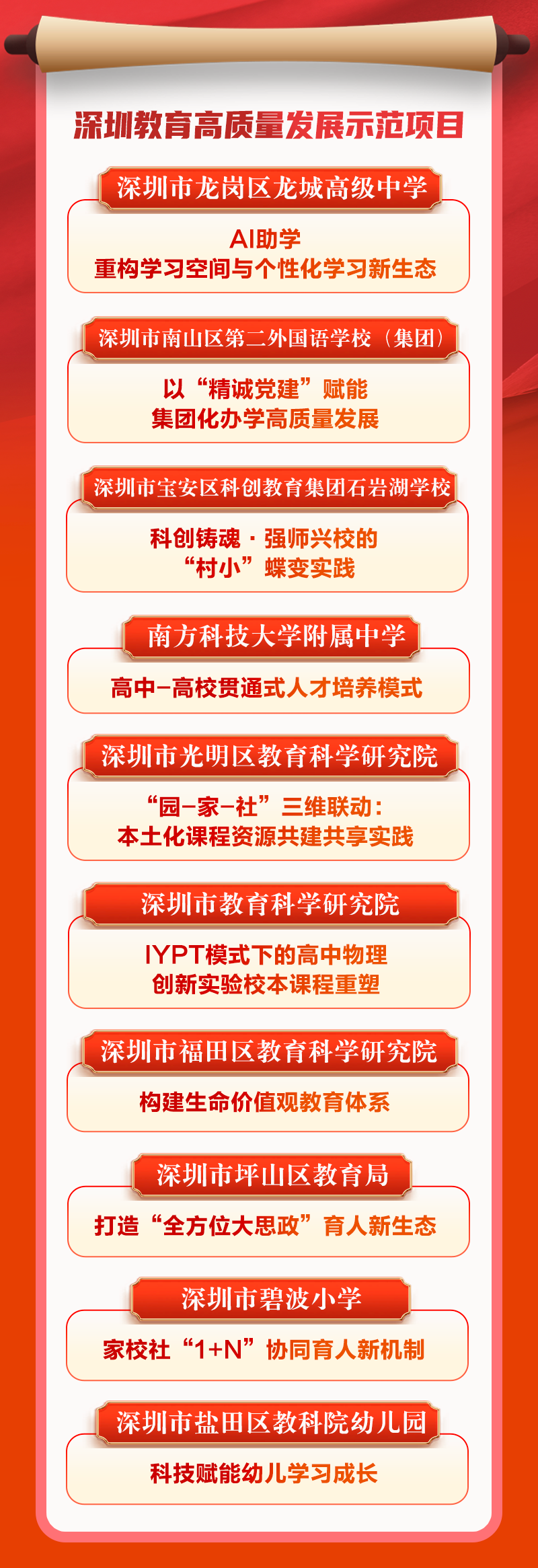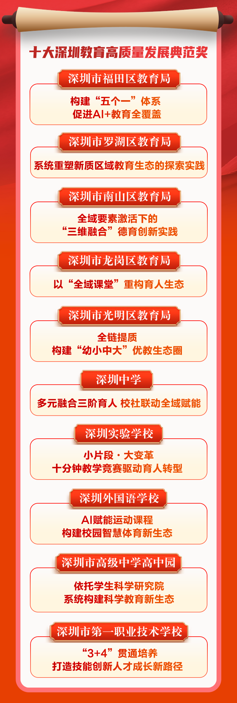 在“十四五”收官、“十五五”谋篇开局的关键节点,为助力深圳教育先行示范和高质量发展,在南方报业传媒集团指导下,南方日报、南方+发起深圳教育高质量发展项目征集展示评选活动。日前,专家评审团已完成最终评审工作,十大深圳教育高质量发展典范奖等奖项名单今日公示。