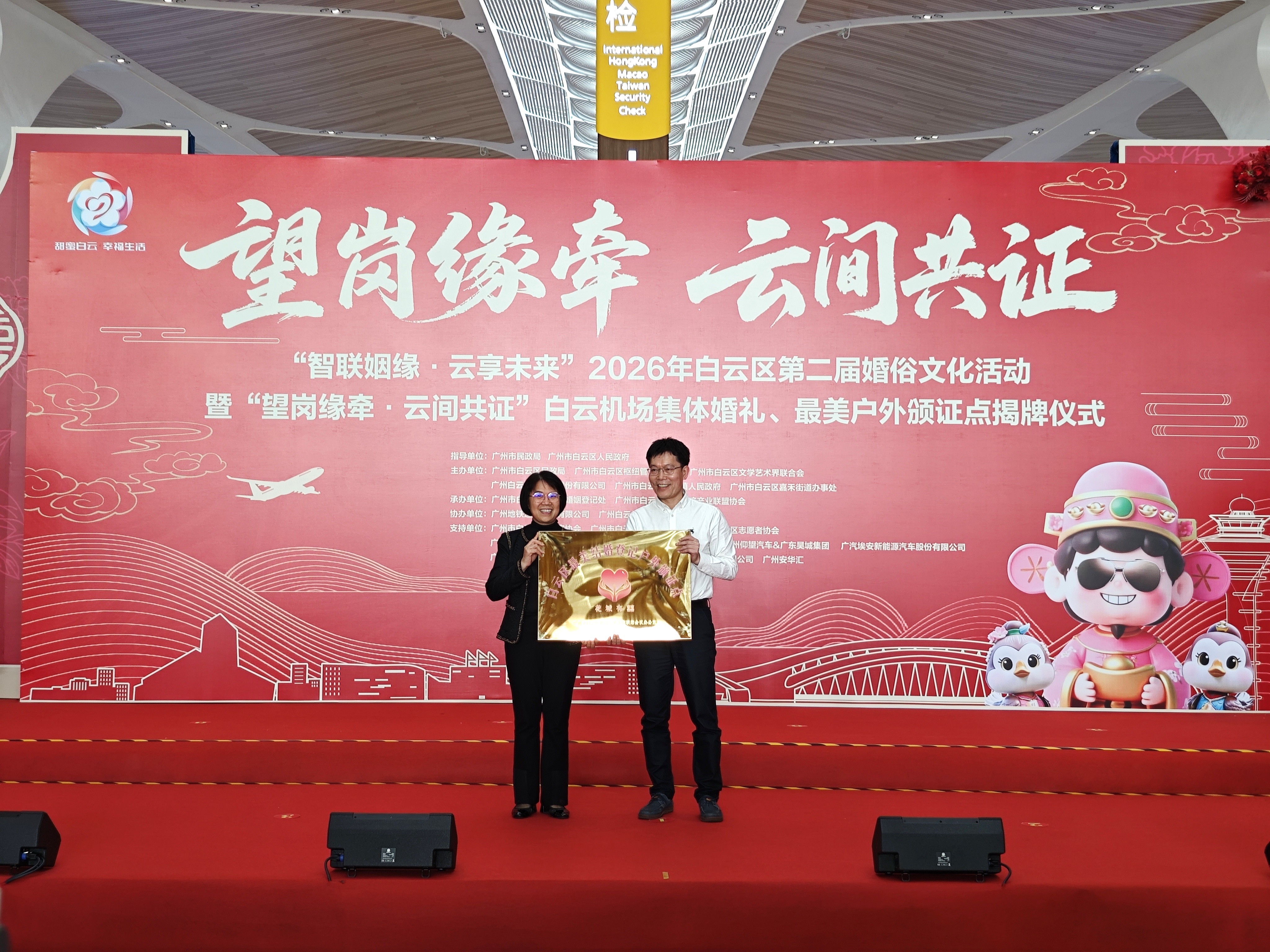 白云区民政局党组书记、局长靳笛指出,将空港与高铁枢纽纳入白云区“最美户外颁证点”矩阵,是推动婚俗改革向纵深发展、提升“甜蜜经济”能级的关键一步。这不仅让“速度之旅”同步成为“幸福之旅”,将枢纽庞大人流转化为情感服务优质留量,还让枢纽脉络与情感脉络完美交融,为“甜蜜白云”品牌注入独特的辨识度与核心竞争力。