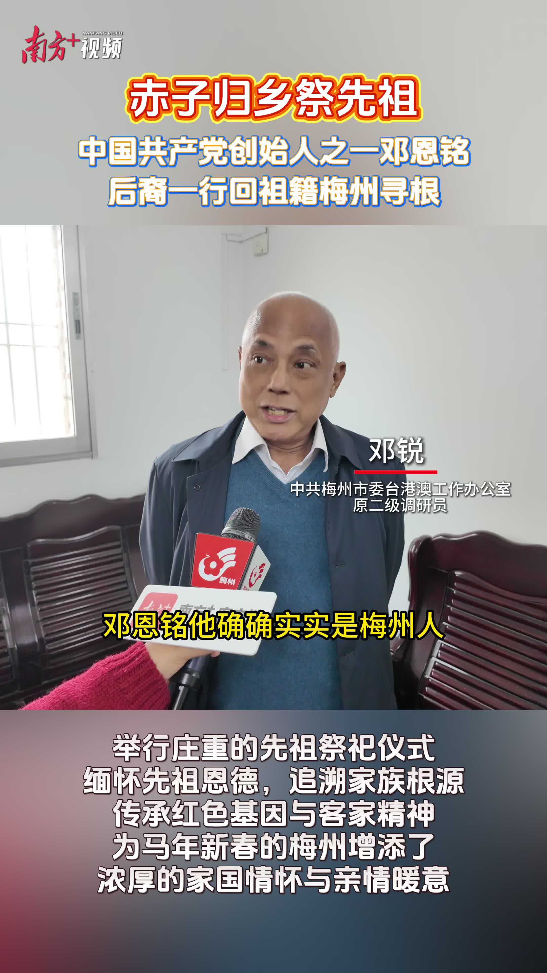 此次邓恩铭后裔回梅州寻根祭祖,既是一场跨越千里的亲情之旅,也是一次红色精神的传承之旅。邓恩铭作为与梅州有着深厚渊源的重量级党史人物,其革命生涯中浸润的客家精神,不仅是邓氏家族的荣耀,更是梅州人民的骄傲。此次活动进一步挖掘了邓恩铭革命事迹中的客家元素,彰显了家国同源的精神内涵,为梅州传承红色基因、弘扬客家文化、凝聚爱党爱国爱乡情怀注入了新的力量。
