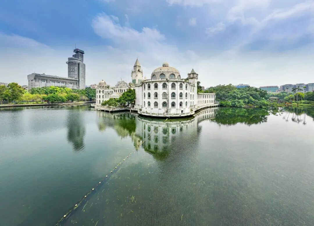 流花湖公园被誉为“岭南盆景之家”,园中有一座特别的建筑,是那座矗立在湖面中央的“白色城堡”。