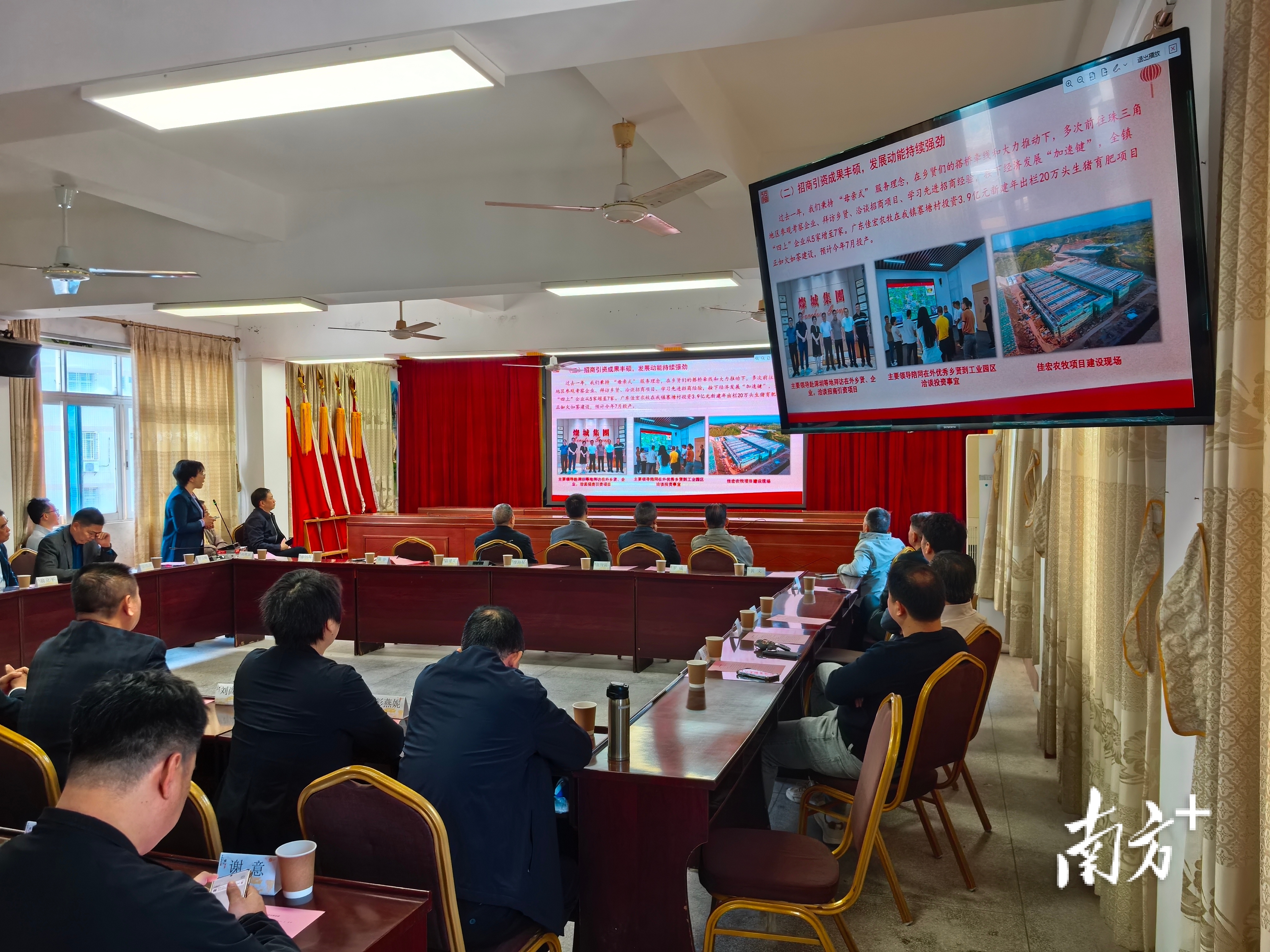 上午10时,新圩镇乡情通报座谈会暨招商引资推介会拉开帷幕,会议由镇党委副书记、镇长罗文峰主持。兴宁市招商服务中心罗海静作兴宁市招商引资政策推介,新圩镇党委书记陈静汇报了全镇实施“百千万工程”、产业发展、招商引资等工作成效,展现了新圩镇近年来攻坚克难、实干笃行的发展成果,也让乡贤们对家乡发展现状有了更全面的了解。