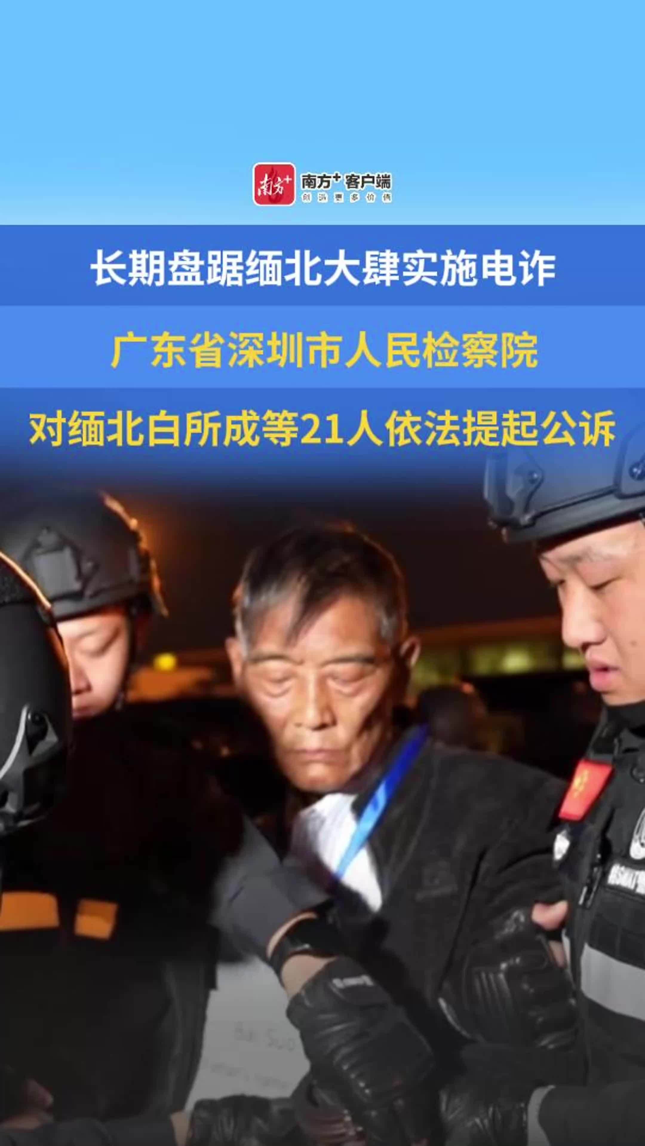 记者今天(11日)从广东省人民检察院获悉,近日,广东省深圳市人民检察院经依法审查,对长期盘踞缅北果敢,依托武装力量,大肆实施主要针对中国境内公民的电信网络诈骗等犯罪的白家犯罪集团首要分子白所成(外文名BAY SAW CHAIN)、白应苍(外文名BAY YIN CHIN)及其他重点涉案人员等21人,根据《中华人民共和国刑法》《中华人民共和国刑事诉讼法》等相关规定,以涉嫌诈骗罪、开设赌场罪、敲诈勒索罪、故意杀人罪、故意伤害罪、绑架罪及贩卖、制造毒品罪等向广东省深圳市中级人民法院提起公诉。