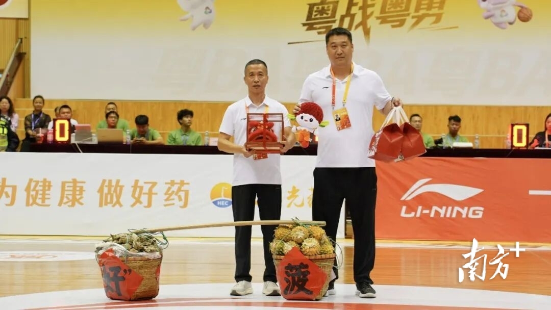 湛江队送给茂名队一筐大蚝和一筐菠萝,以及湛江醒狮文创产品小狮头,其中,蚝菠寓意“好波”即“好球”。既彰显湛茂双方友谊第一,共赢湛茂都市圈的美好愿景;也寄托比赛第二,产业关联双延链的合作深意。