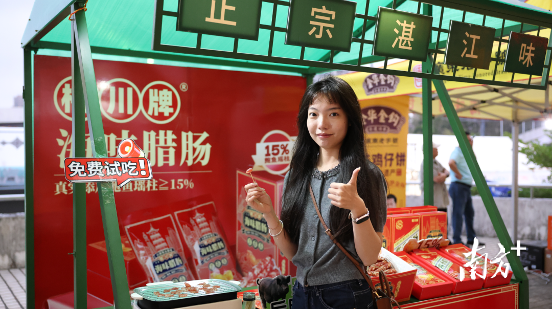在场外,湛江组织16家“湛品”企业参与“广货行天下,‘湛品’助联赛”展销活动,实现“体育+消费”的深度联动。火山红薯、海威金鲳鱼、正大菠萝猪、谷丰粽子、御唐府菠萝酥等湛江优质特色农产品纷纷亮相,吸引众多观众驻足打卡试吃。