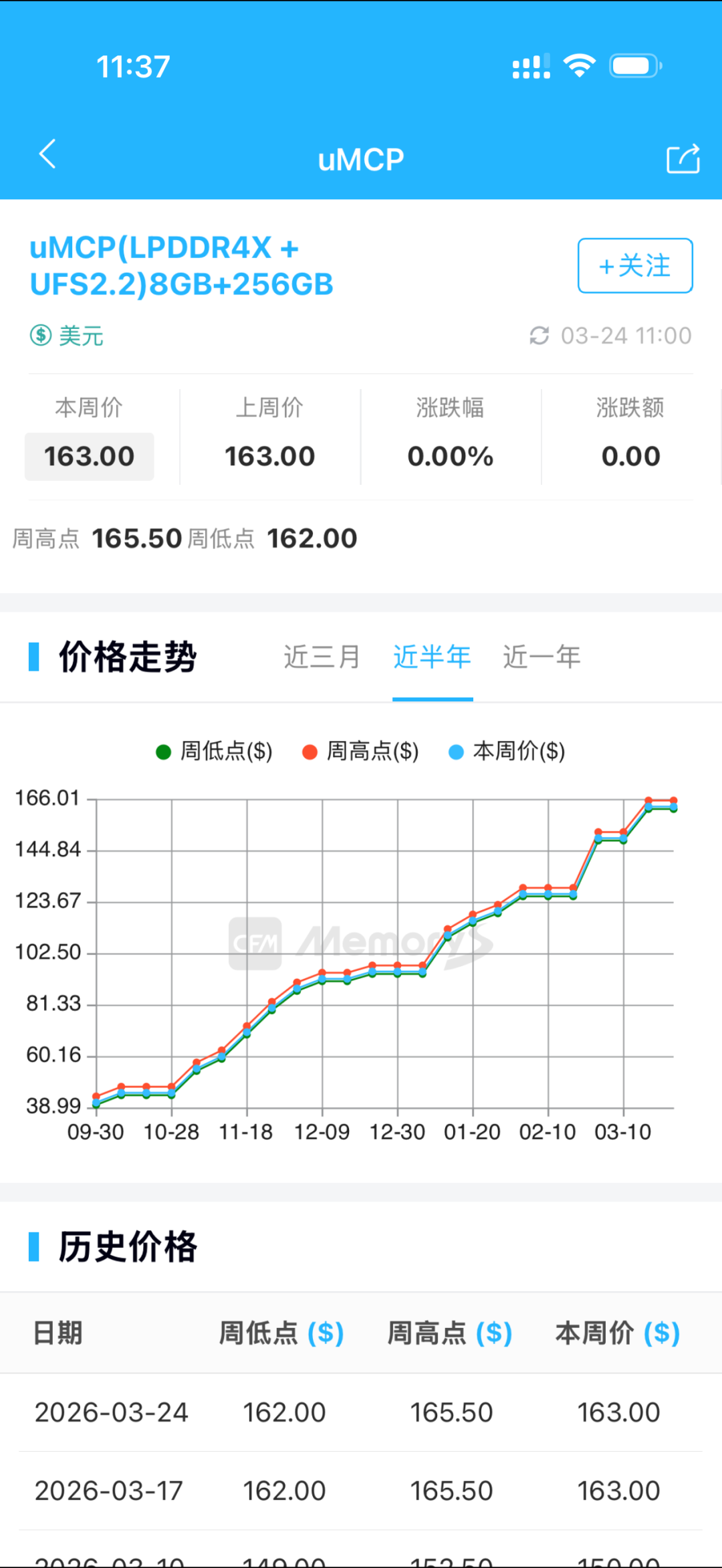 存储芯片的新货报价趋势。 (受访者供图)