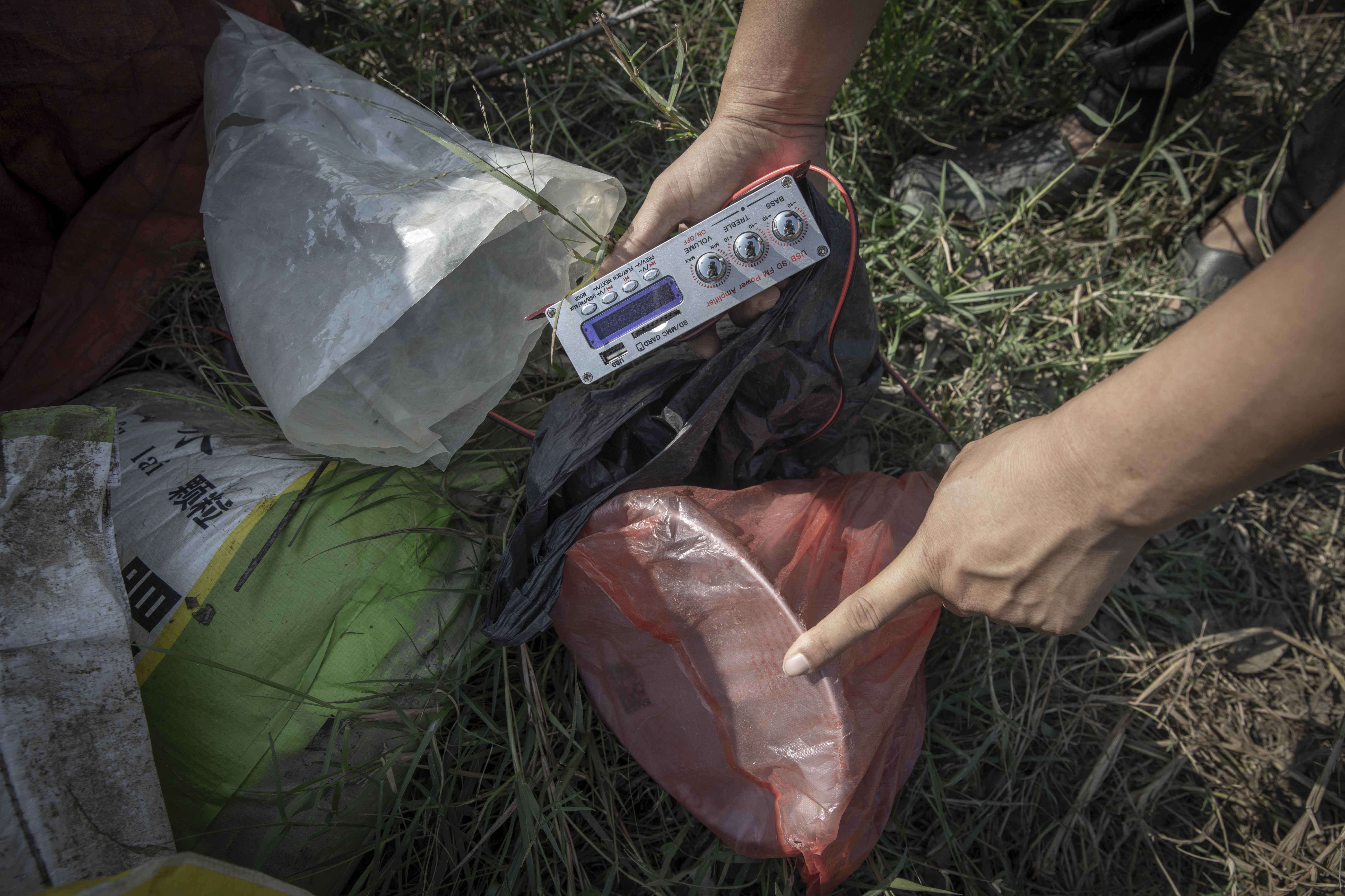 11月6日,田地里发现通过模拟鸟鸣来诱捕鸟类的“鸟媒”外放器。